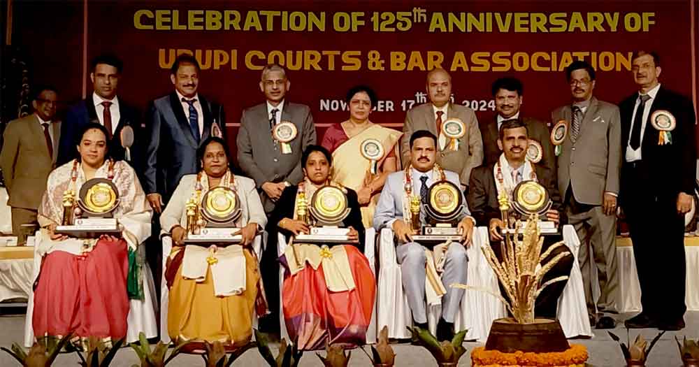 ಸಹಾಯಕ ಸರಕಾರಿ ಅಭಿಯೋಜಕರು ಮತ್ತು ಸರಕಾರಿ ಅಭಿಯೋಜಕರಾಗಿ ರಾಜ್ಯದ ವಿವಿಧ ನ್ಯಾಯಾಲಯಗಳಲ್ಲಿ ಕಾರ್ಯ ನಿರ್ವಹಿಸುತ್ತಿರುವ ಉಡುಪಿ ವಕೀಲರ ಸಂಘದ ಮಾಜಿ ಸದಸ್ಯರಾದ ಶ್ರೀ ಹರಿಶ್ಚಂದ್ರ ಉದಿಯಾವರ್, ಶ್ರೀ ನಾರಾಯಣ ಶೇರಿಗಾರ್, ಶ್ರೀ ಬದರಿನಾಥ್ ನಾಯರಿ, ಕು. ಸೀತಾ ಮತ್ತು ಶ್ರೀಮತಿ ಅಶ್ವಿತಾ ಅಮೀನ್ ಇವರನ್ನು ನವೆಂಬರ್ ತಾ. 17ರಂದು ನಡೆದ ಉಡುಪಿ ನ್ಯಾಯಾಲಯ ಮತ್ತು ವಕೀಲರ ಸಂಘದ ಶತಮಾನೋತ್ತರ ರಜತ ಮಹೋತ್ಸವ ಉದ್ಘಾಟನಾ ಸಮಾರಂಭದಲ್ಲಿ ಸನ್ಮಾನಿ ಸಲಾಯಿತು.