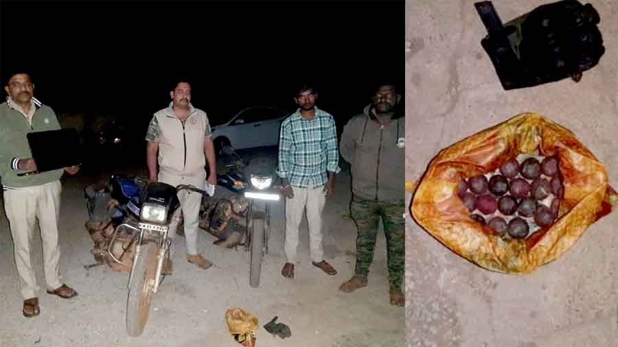 ಫಲವನಹಳ್ಳಿ ಅರಣ್ಯ ವಲಯದಲ್ಲಿ 32 ಜೀವಂತ ನಾಡಬಾಂಬ್ ಪತ್ತೆ: ಇಬ್ಬರ ಬಂಧನ