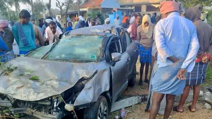ಕೊಡಸೋಗೆ ಸಮೀಪದ ರಸ್ತೆ ಬದಿಯಲ್ಲಿದ್ದ ಲೈಟ್ ಕಂಬಕ್ಕೆ ಕಾರು ಡಿಕ್ಕಿಯಾದ ರಭಸಕ್ಕೆ ವಿದ್ಯುತ್ ಕಂಬ ಕಾರಿನ ಮೇಲೆ ಮುರಿದು ಬಿದ್ದಿದ್ದು ಇಬ್ಬರು ಸ್ಥಳದಲ್ಲೇ ಮೃತಪಟ್ಟಿದ್ದಾರೆ. ತೆರಕಣಾಂಬಿ ಪೊಲೀಸರು ಸ್ಥಳಕ್ಕೆ ಭೇಟಿ ನೀಡಿ ಮೃತದೇಹಗಳನ್ನು ಮರಣೋತ್ತರ ಪರೀಕ್ಷೆಗಾಗಿ ರವಾನಿಸಿ ಪ್ರಕರಣ ದಾಖಲಿಸಿ ತನಿಖೆ ನಡೆಸಿದ್ದಾರೆ.