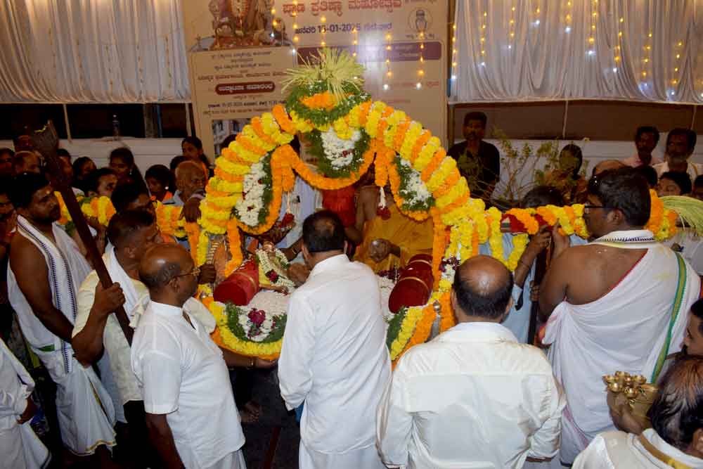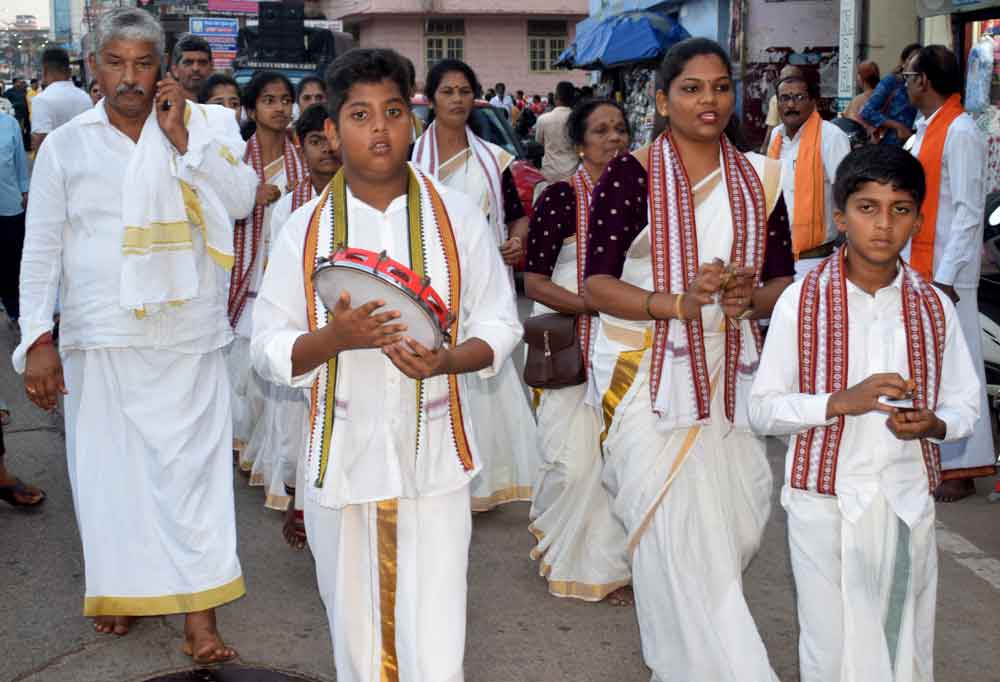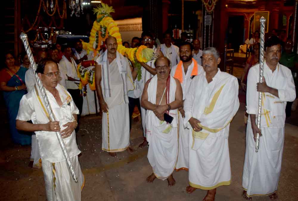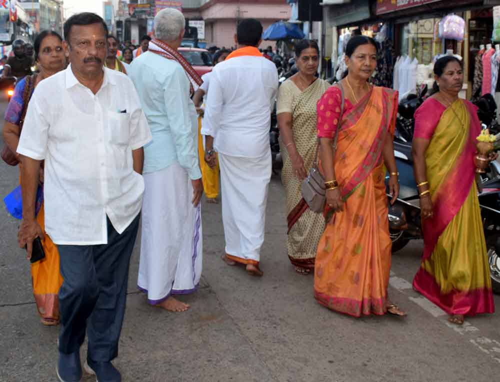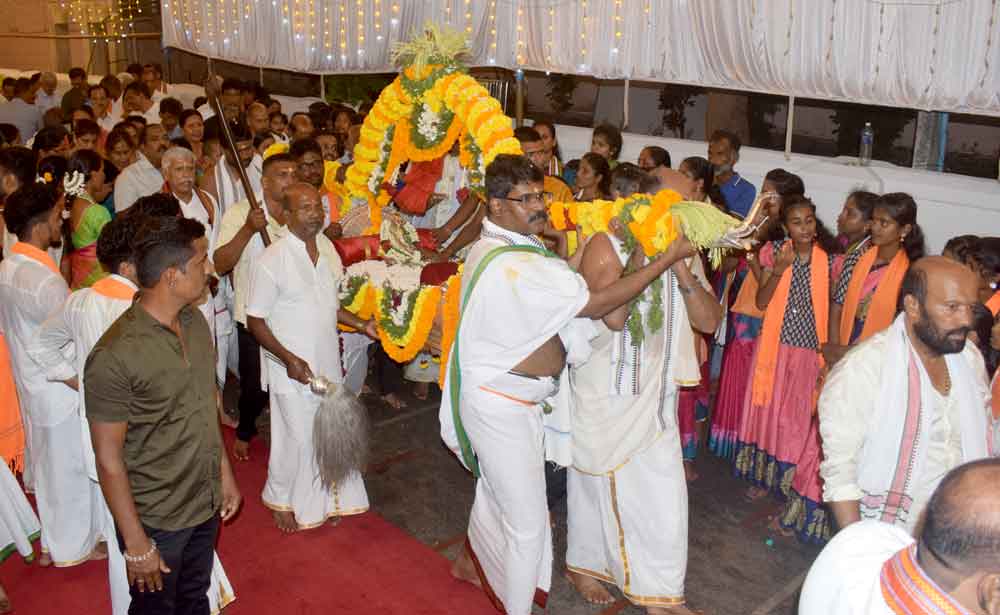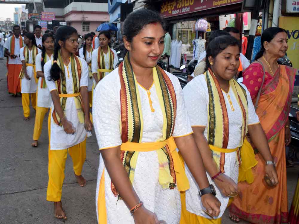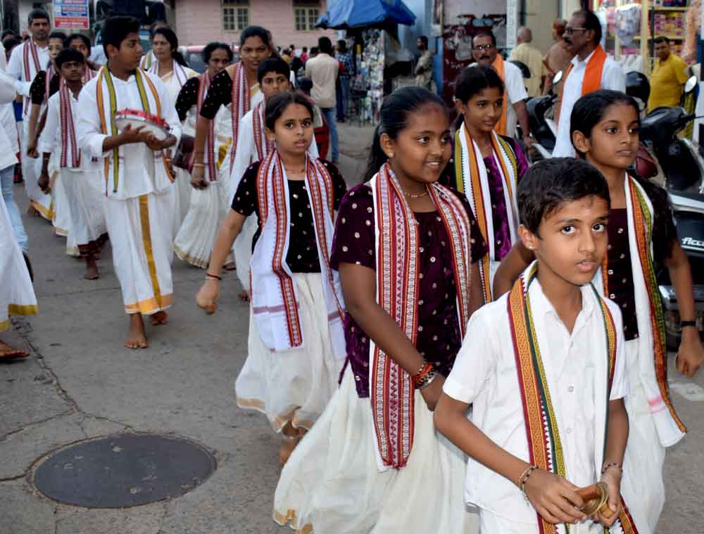 ಸಾಯ೦ಕಾಲ 4.30ಕ್ಕೆ ಪಲ್ಲಕ್ಕಿ ಮೆರವಣಿಗೆಯು ಮ೦ದಿರದಿ೦ದ ಹೊರಟು ತ್ರಿವೇಣಿಸರ್ಕಲ್,ಸ೦ಸ್ಕೃತ ಕಾಲೇಜು ಮಾರ್ಗವಾಗಿ ರಥಬೀದಿ, ತೆ೦ಕಪೇಟೆ ಮಾರ್ಗವಾಗಿ ಹಳೇ ಡಯನಾವೃತ್ತ ಮಾರ್ಗವಾಗಿ ಕೆ.ಎ೦.ಮಾರ್ಗವಾಗಿ ಸಾಗಿ ಬ೦ದು ಮ೦ದಿರ ತಲುಪಿತು.ಭಕ್ತರು ದಾರಿಯುದ್ಧಕ್ಕೂ ಹೂ-ಆರತಿಯನ್ನು ನೀಡಿದರು.
