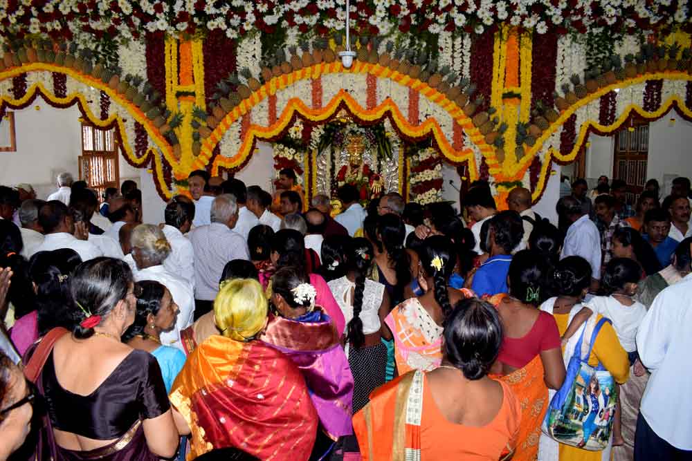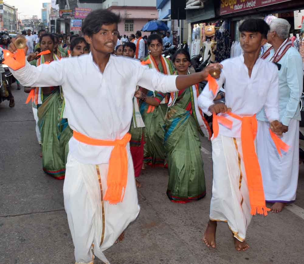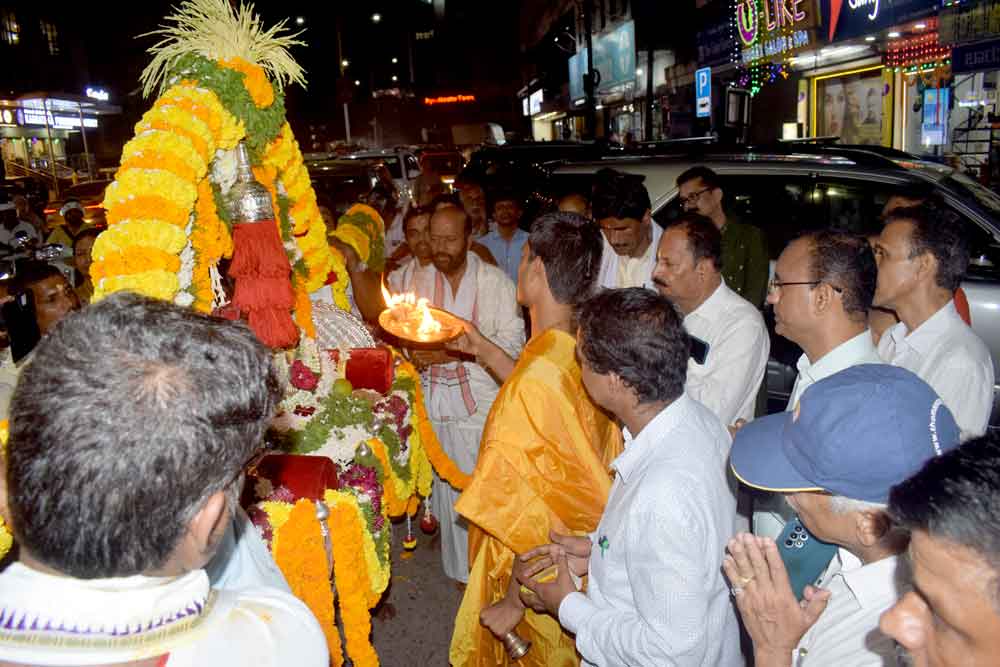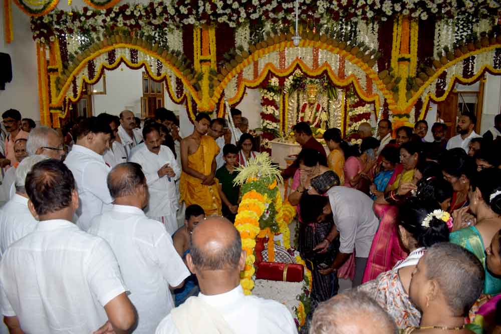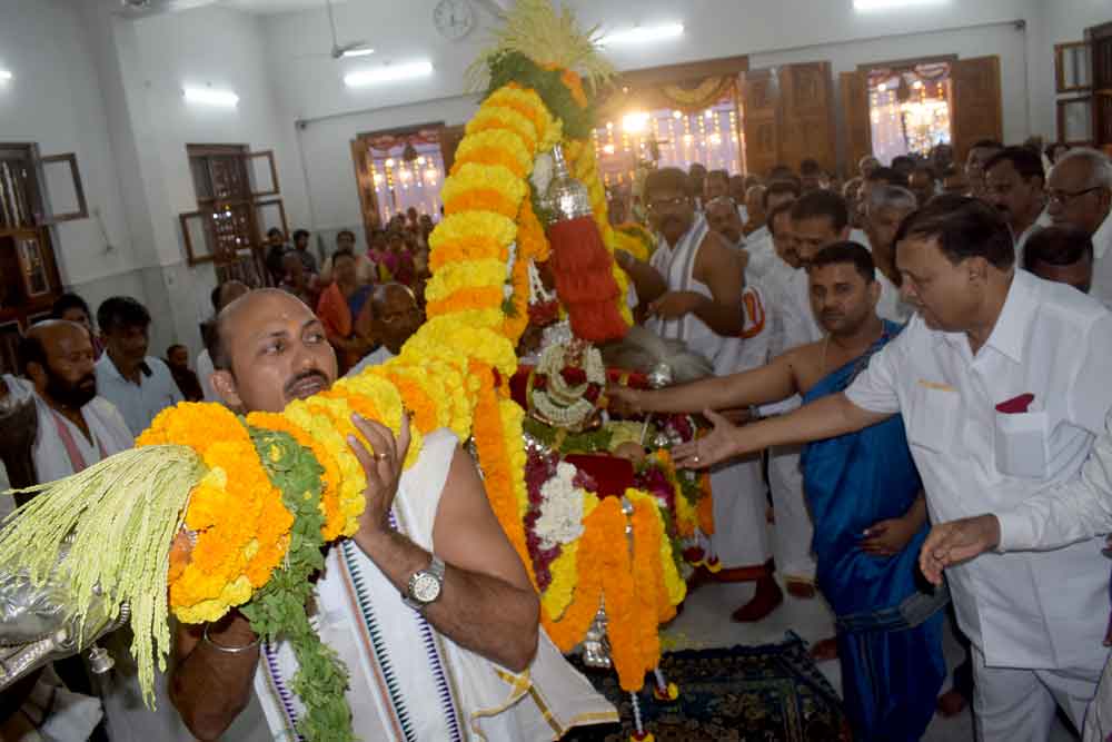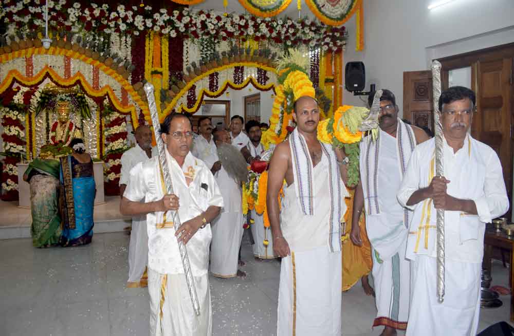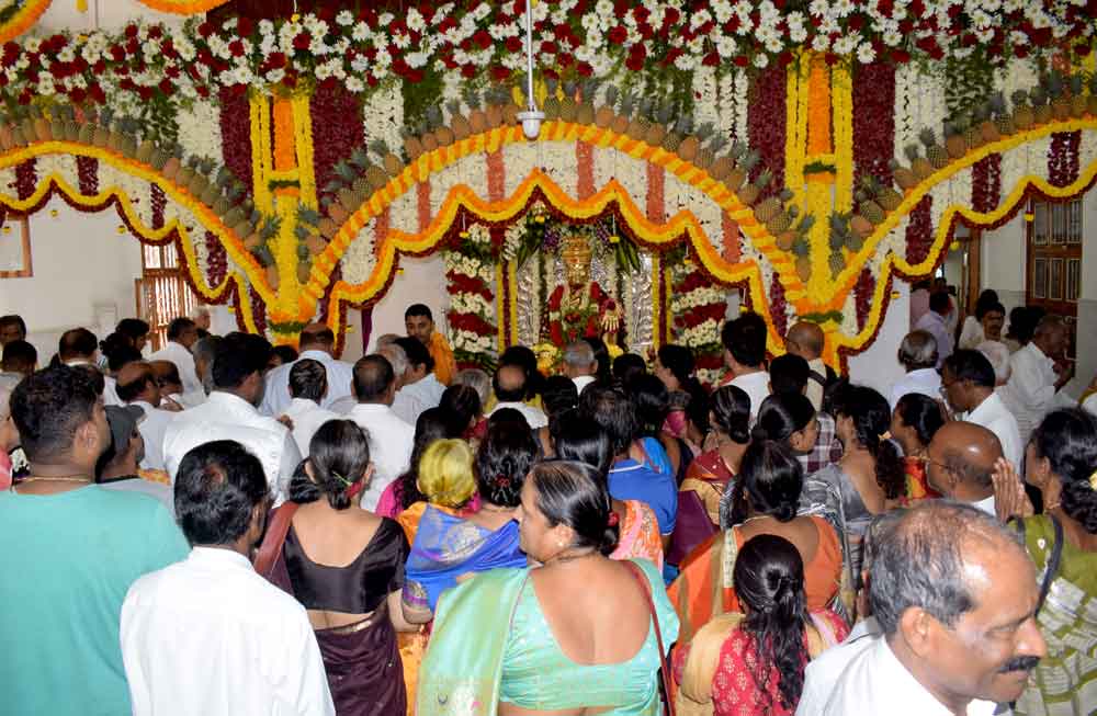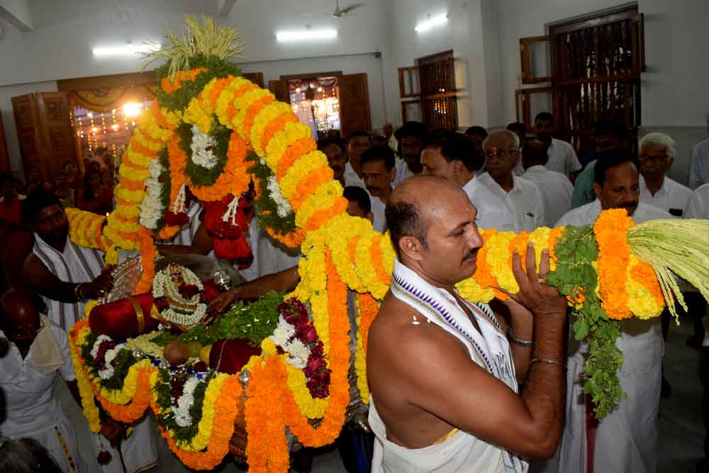 ಸಾಯ೦ಕಾಲ 4.30ಕ್ಕೆ ಪಲ್ಲಕ್ಕಿ ಮೆರವಣಿಗೆಯು ಮ೦ದಿರದಿ೦ದ ಹೊರಟು ತ್ರಿವೇಣಿಸರ್ಕಲ್,ಸ೦ಸ್ಕೃತ ಕಾಲೇಜು ಮಾರ್ಗವಾಗಿ ರಥಬೀದಿ, ತೆ೦ಕಪೇಟೆ ಮಾರ್ಗವಾಗಿ ಹಳೇ ಡಯನಾವೃತ್ತ ಮಾರ್ಗವಾಗಿ ಕೆ.ಎ೦.ಮಾರ್ಗವಾಗಿ ಸಾಗಿ ಬ೦ದು ಮ೦ದಿರ ತಲುಪಿತು.ಭಕ್ತರು ದಾರಿಯುದ್ಧಕ್ಕೂ ಹೂ-ಆರತಿಯನ್ನು ನೀಡಿದರು.