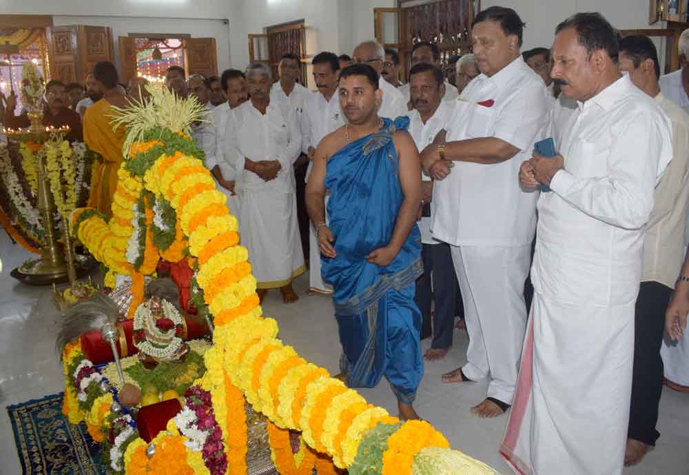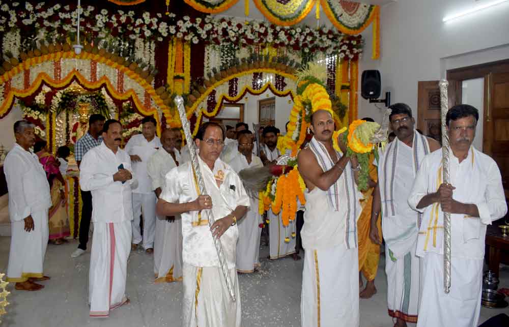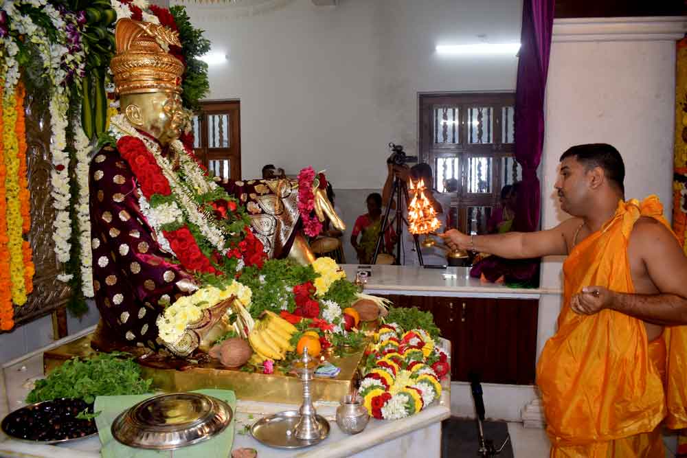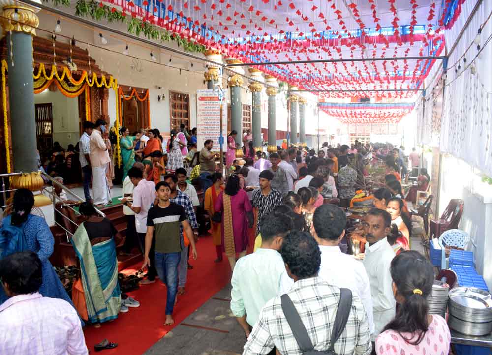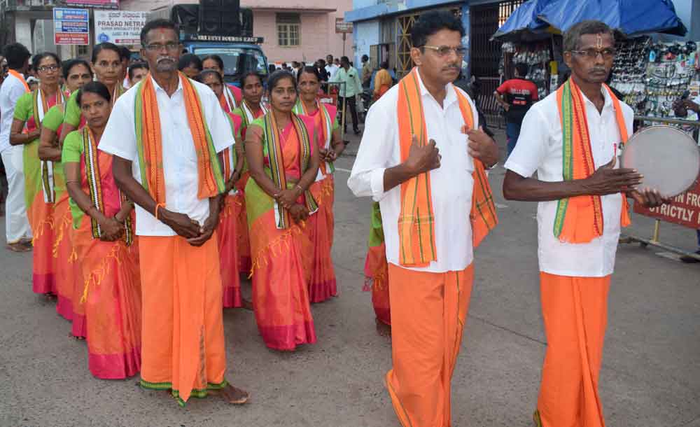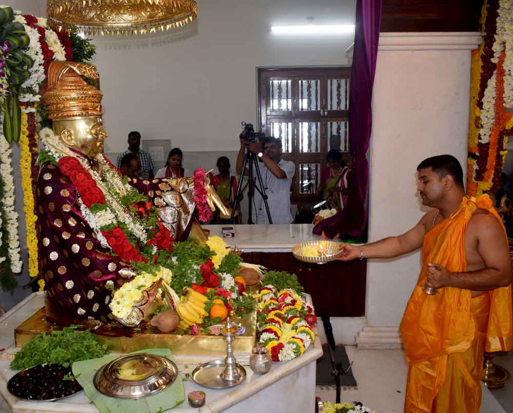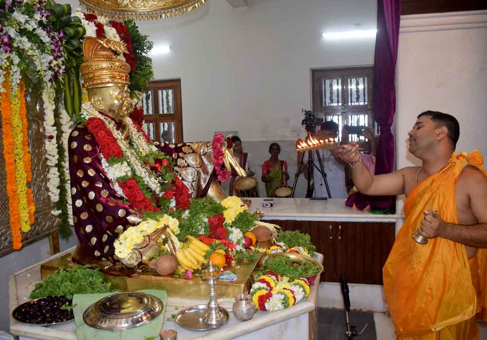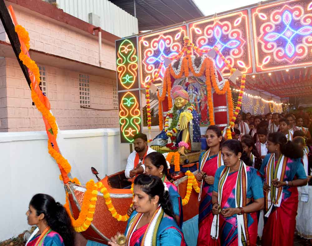 ಸಾಯ೦ಕಾಲ 4.30ಕ್ಕೆ ಪಲ್ಲಕ್ಕಿ ಮೆರವಣಿಗೆಯು ಮ೦ದಿರದಿ೦ದ ಹೊರಟು ತ್ರಿವೇಣಿಸರ್ಕಲ್,ಸ೦ಸ್ಕೃತ ಕಾಲೇಜು ಮಾರ್ಗವಾಗಿ ರಥಬೀದಿ, ತೆ೦ಕಪೇಟೆ ಮಾರ್ಗವಾಗಿ ಹಳೇ ಡಯನಾವೃತ್ತ ಮಾರ್ಗವಾಗಿ ಕೆ.ಎ೦.ಮಾರ್ಗವಾಗಿ ಸಾಗಿ ಬ೦ದು ಮ೦ದಿರ ತಲುಪಿತು.ಭಕ್ತರು ದಾರಿಯುದ್ಧಕ್ಕೂ ಹೂ-ಆರತಿಯನ್ನು ನೀಡಿದರು.