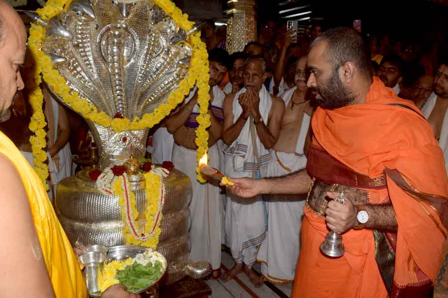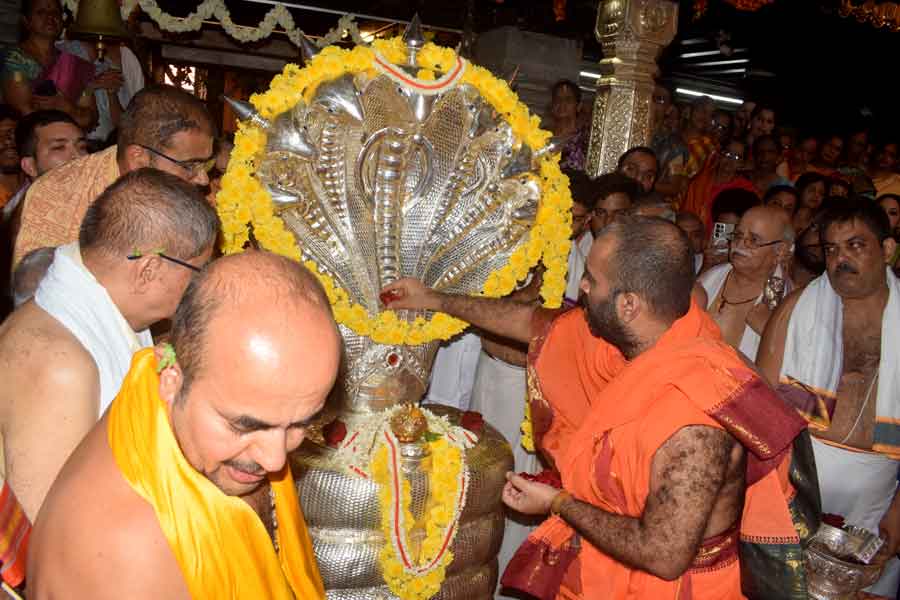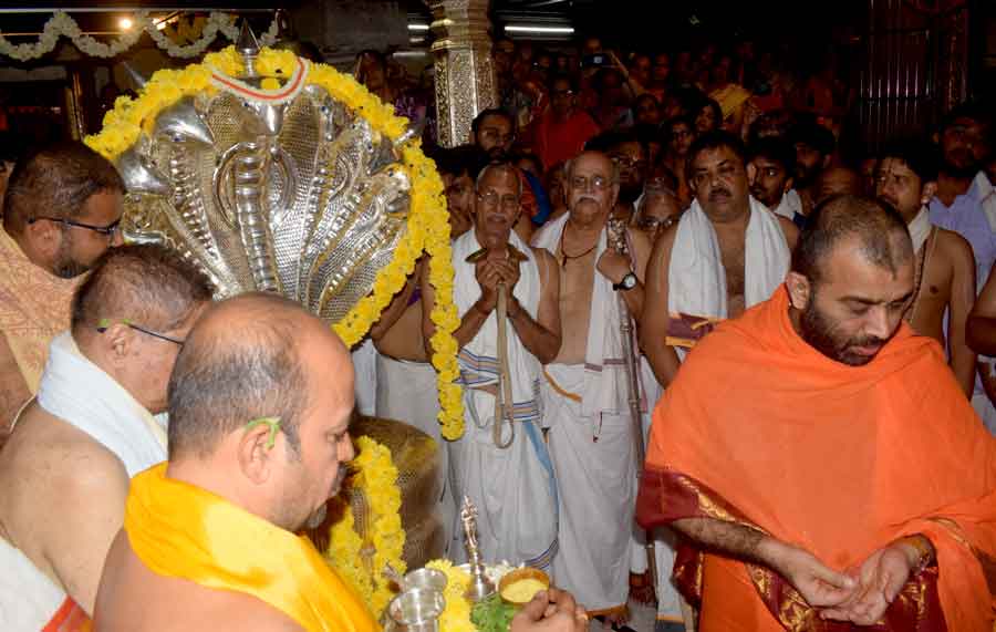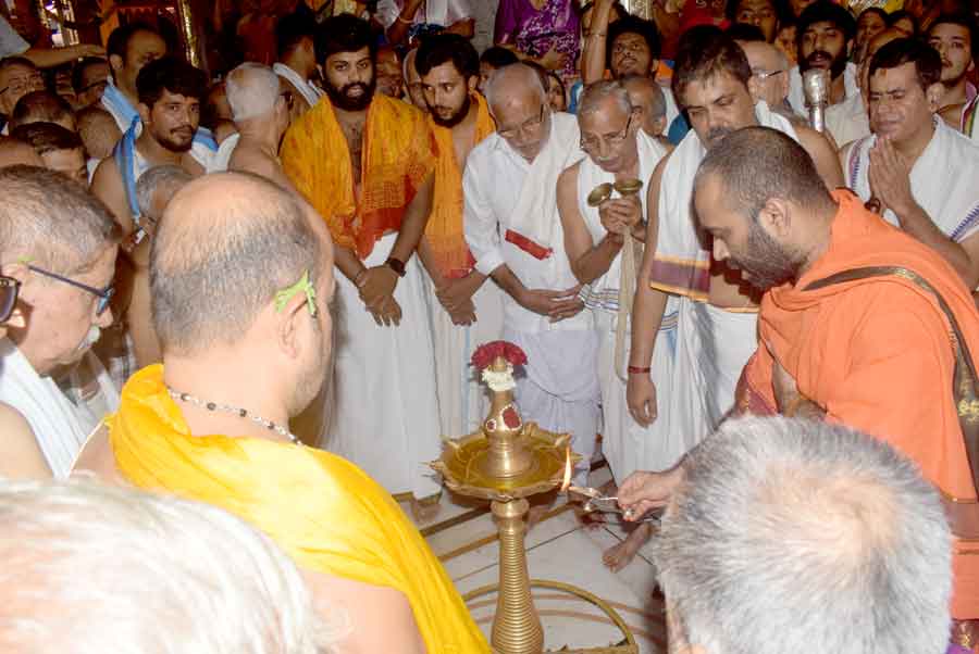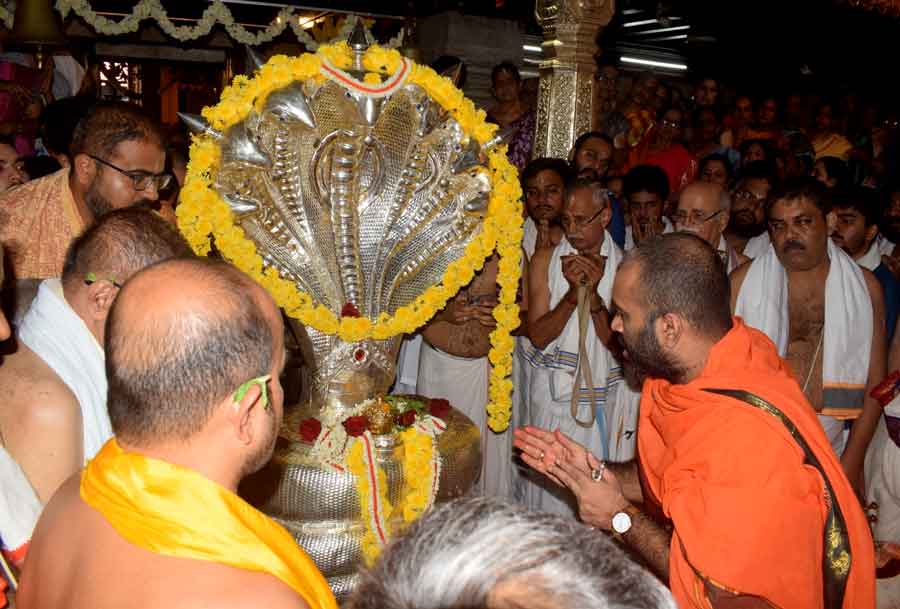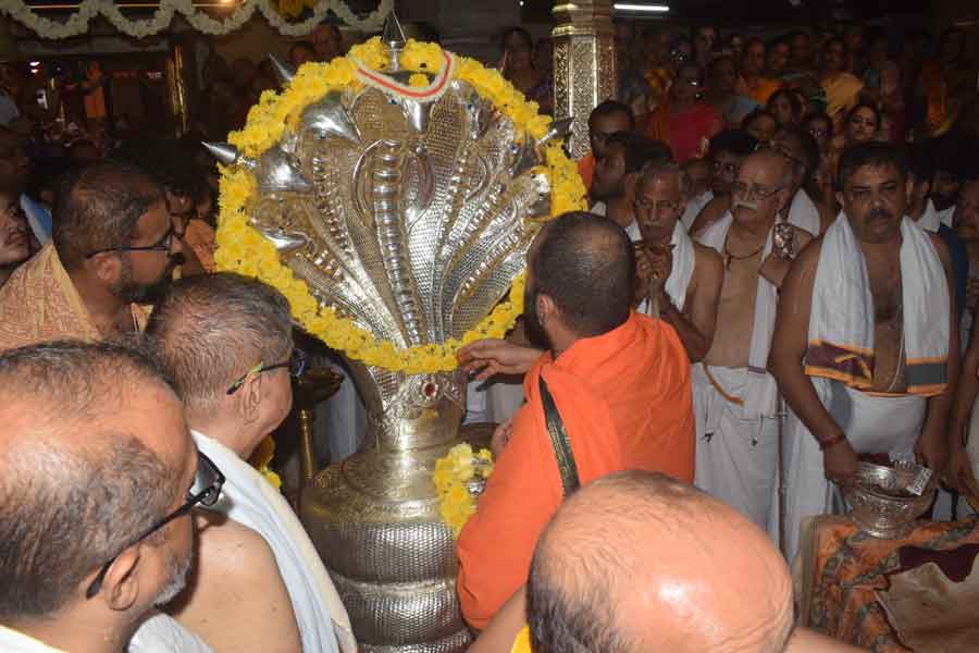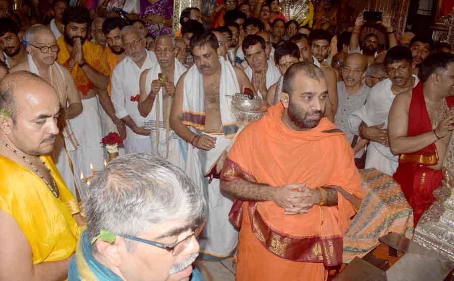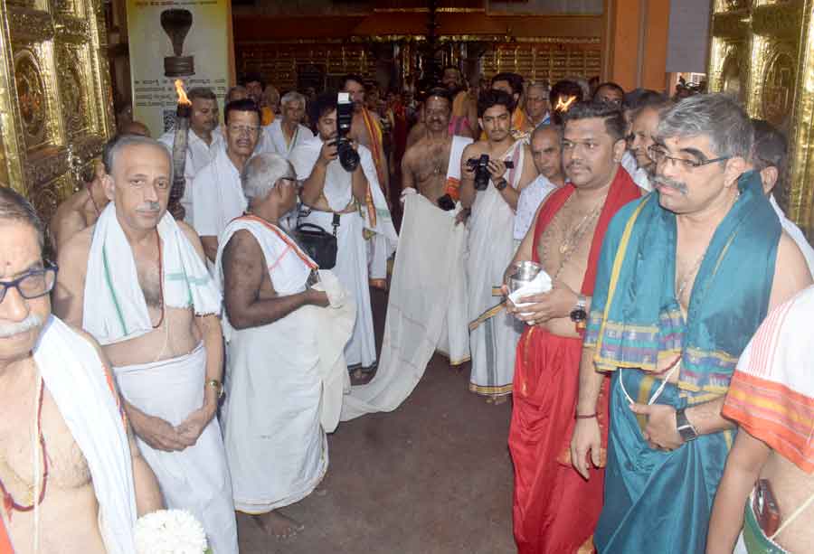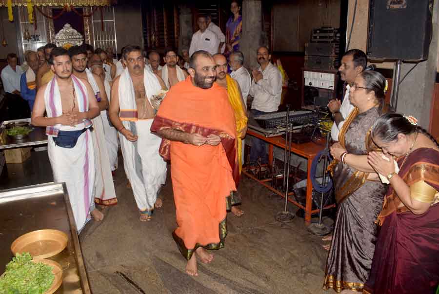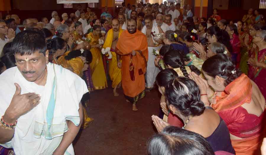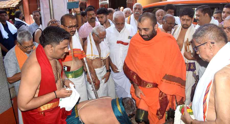 ದೇವಾಲಯಕ್ಕೆ ಆಗಮಿಸಿದ ಶ್ರೀಪಾದರನ್ನು ಆಡಳಿತ ಮ೦ಡಳಿಯ ಮೊಕ್ತೇಸರರಾದ ಪಿ.ವಿ.ಶೆಣೈ ಹಾಗೂ ಸರ್ವಸದಸ್ಯರು ಆದರದಿ೦ದ ಸ್ವಾಗತಿಸಿ ಬರಮಾಡಿಕೊ೦ಡರು.