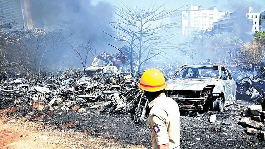 ಬೆಂಗಳೂರು: ಬೆಂಕಿ ಅವಘಡ; ಜಕ್ಕರಾಯನಕೆರೆ ಮೈದಾನದಲ್ಲಿ 150 ವಾಹನಗಳು ಸುಟ್ಟು ಭಸ್ಮ!
