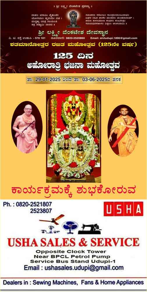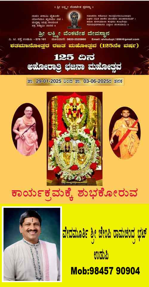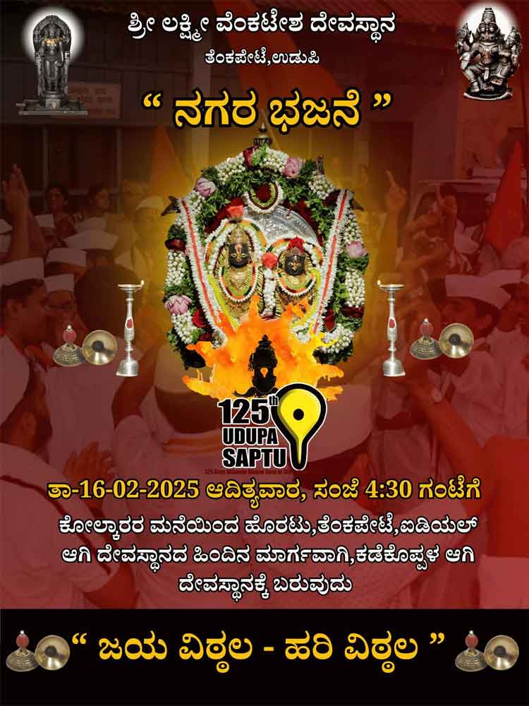 ಶ್ರೀಲಕ್ಷ್ಮೀವೆ೦ಕಟೇಶ ದೇವಸ್ಥಾನ:125ದಿನ ಅಹೋರಾತ್ರಿ ಭಜನಾ ಕಾರ್ಯಕ್ರಮ-ಫೆ.16ಕ್ಕೆನಾಳೆ 3ನೇ ನಗರ ಭಜನೆ