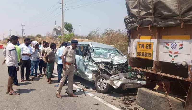 ಬೆಂಗಳೂರು ಮೂಲದ ಇನೊವಾ ಕಾರು, ತಮಿಳುನಾಡು ಪಾಸಿಂಗ್ ಇರುವ ಲಾರಿ ಹಿಂಬದಿಗೆ ಗುದ್ದಿದೆ. ಪರಿಣಾಮ ಕಾರಿನಲ್ಲಿದ್ದ ಐವರು ಸ್ಥಳದಲ್ಲೇ ಪೃತಪಟ್ಟಿದ್ದಾರೆ. ಇನ್ನು ಗುದ್ದಿದ ರಭಸಕ್ಕೆ ಇನ್ನೊವಾ ಕಾರಿನ ಮುಂಭಾಗ ಸಂಪೂರ್ಣವಾಗಿ ನಜ್ಜುಗುಜ್ಜಾಗಿದೆ.