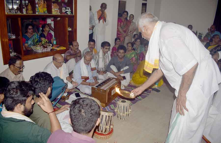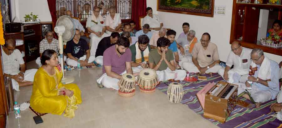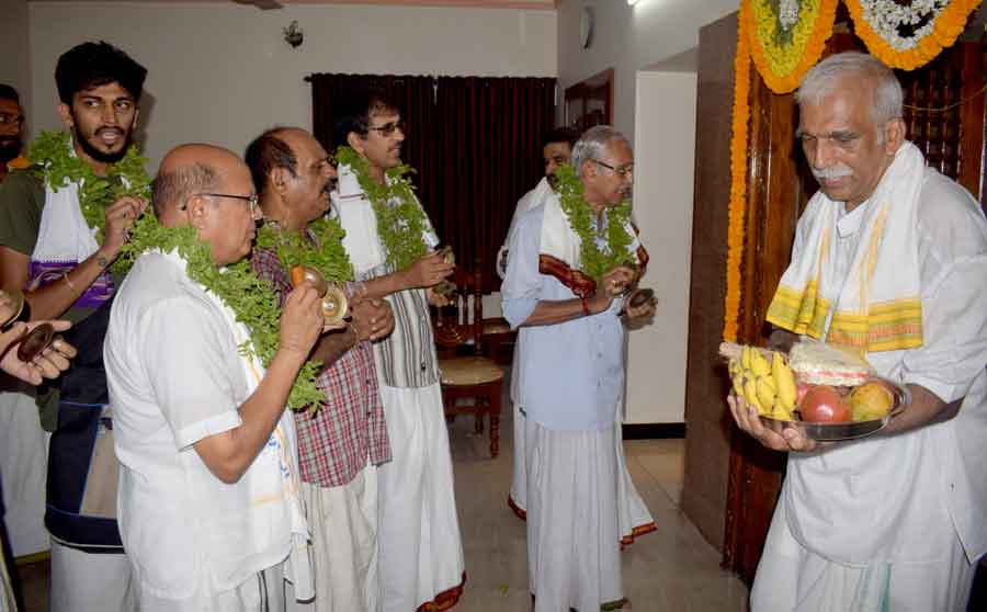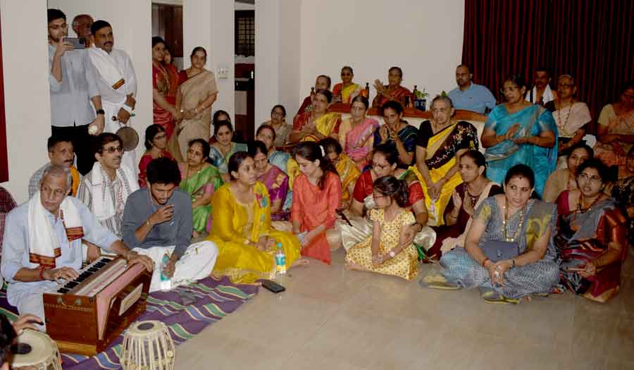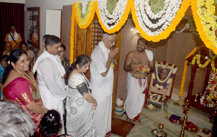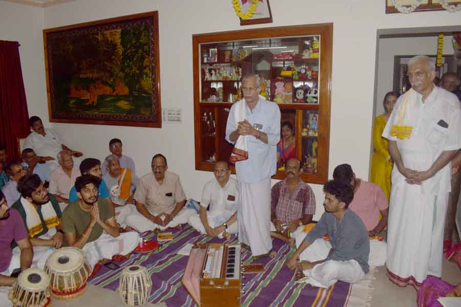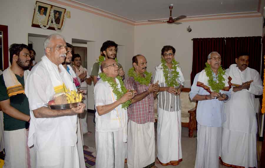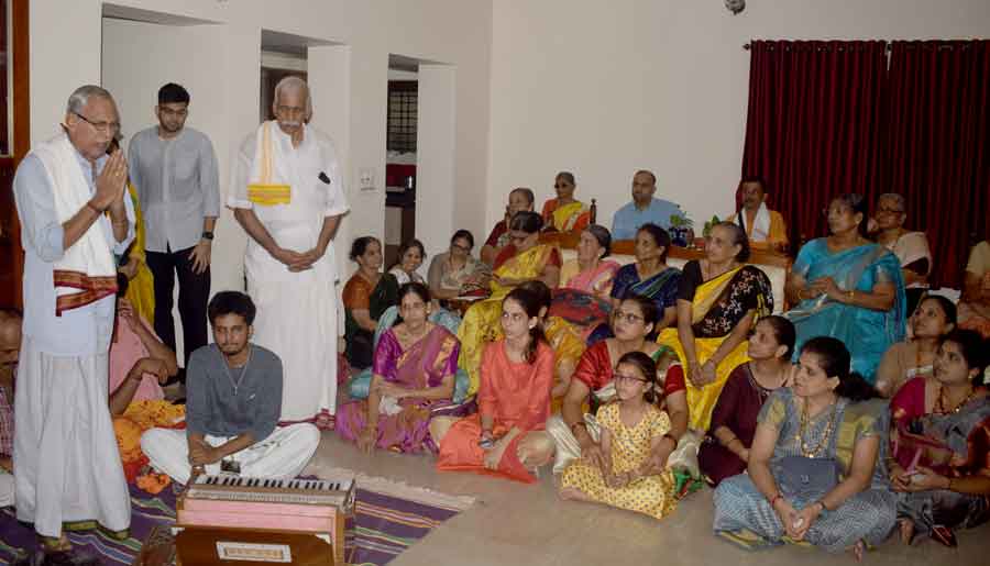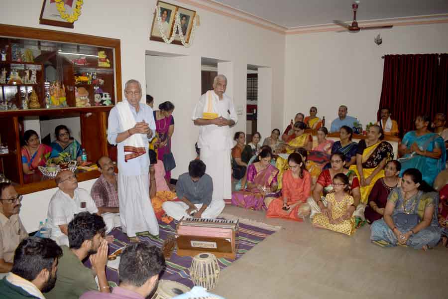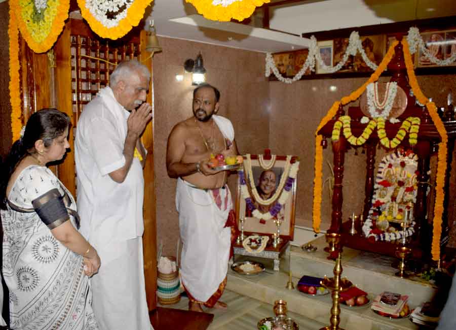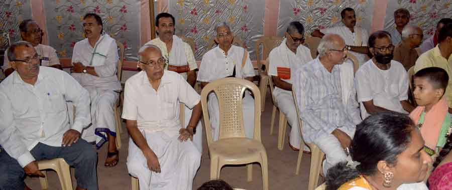 ಮನೆ ಭಜನೆಯೊ೦ದಿಗೆ ಶ್ರೀಸುಧೀ೦ದ್ರ ತೀರ್ಥಶ್ರೀಪಾದರ ಭಾವಚಿತ್ರಕ್ಕೆ ಮಧುಕರ ಭಟ್ ರವರು ಆರತಿಯನ್ನು ಬೆಳಗಿದರು.ನ೦ತರ ಸುಧೀ೦ದ್ರವಾಣಿಯನ್ನು ನಡೆಸಿಕೊಡಲಾಯಿತು.