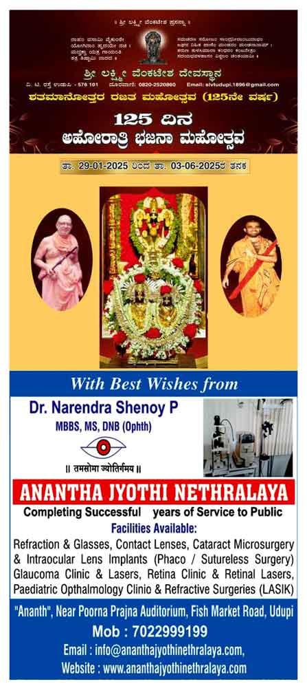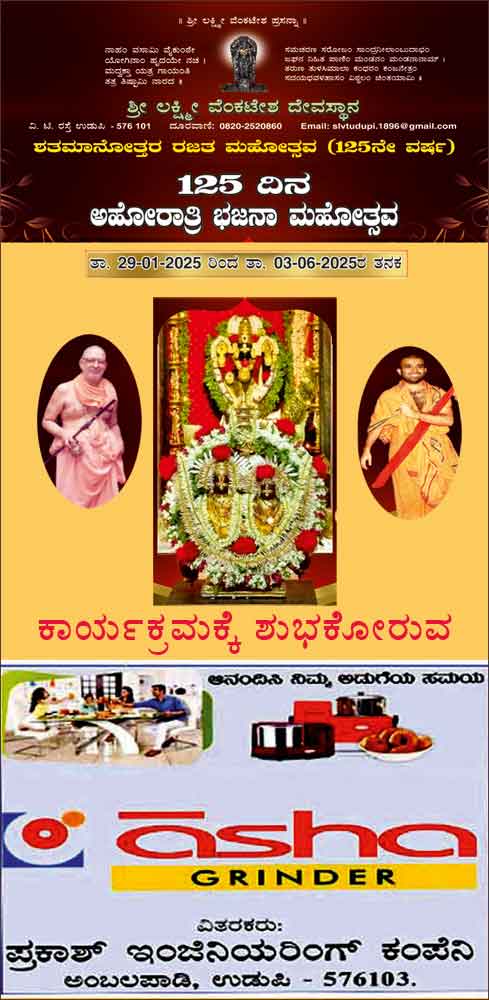 ಉಡುಪಿ ಶ್ರೀ ಲಕ್ಷ್ಮೀ ವೆಂಕಟೇಶ ದೇವಸ್ಥಾನಕ್ಕೆ ಶ್ರೀ ಕೈವಲ್ಯ ಶ್ರೀಗಳ ಭೇಟಿ