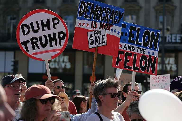 ಸರ್ಕಾರದ ಹಲವು ಇಲಾಖೆಗಳಲ್ಲಿ ಸಿಬ್ಬಂದಿ ಕಡಿತದಿಂದ ಹಿಡಿದು ವ್ಯಾಪಾರ ಸುಂಕಗಳು ಮತ್ತು ನಾಗರಿಕ ಸ್ವಾತಂತ್ರ್ಯಗಳನ್ನು ನಾಶಪಡಿಸುವವರೆಗೆ ರಿಪಬ್ಲಿಕನ್ ಪಕ್ಷದ ಅಧ್ಯಕ್ಷ ಡೊನಾಲ್ಡ್ ಟ್ರಂಪ್ ಅವರ ನೀತಿಗಳ ವಿರೋಧಿಗಳು ವಾಷಿಂಗ್ಟನ್, ನ್ಯೂಯಾರ್ಕ್, ಹೂಸ್ಟನ್, ಫ್ಲೋರಿಡಾ, ಕೊಲೊರಾಡೋ ಮತ್ತು ಲಾಸ್ ಏಂಜಲೀಸ್, ಇತರ ಸ್ಥಳಗಳಲ್ಲಿ ಪ್ರತಿಭಟನಾ ರ್ಯಾಲಿ ನಡೆಸಿದರು.