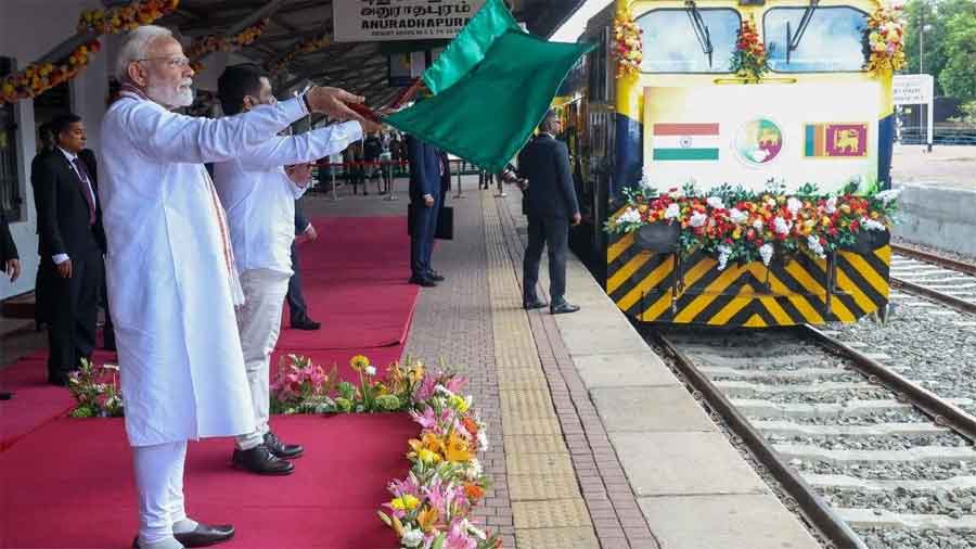 ಇದಾದ ನಂತರ, ಪ್ರಧಾನಿ ಮೋದಿ ಮತ್ತು ಶ್ರೀಲಂಕಾ ಅಧ್ಯಕ್ಷ ಅನುರ ಕುಮಾರ ದಿಸ್ಸಾನಾಯಕೆ ಜಂಟಿಯಾಗಿ ಮಹೋ-ಅನುರಾಧಪುರ ರೈಲು ಮಾರ್ಗದ ಸಿಗ್ನಲಿಂಗ್ ವ್ಯವಸ್ಥೆಯನ್ನು ಉದ್ಘಾಟಿಸಿದರು. ಇದು ಭಾರತ ಸರ್ಕಾರದ ಸಹಾಯದಿಂದ ಪೂರ್ಣಗೊಂಡ ಯೋಜನೆಯಾಗಿದೆ. ಪ್ರಧಾನಿ ಮೋದಿ ಅವರು ಮಹೋ-ಒಮಂಥೈ ರೈಲು ಮಾರ್ಗ ಉದ್ಘಾಟಿಸಿದರು. ಇಲ್ಲಿಂದ ಅವರು ರೈಲಿಗೆ ಹಸಿರು ನಿಶಾನೆ ತೋರಿದರು.