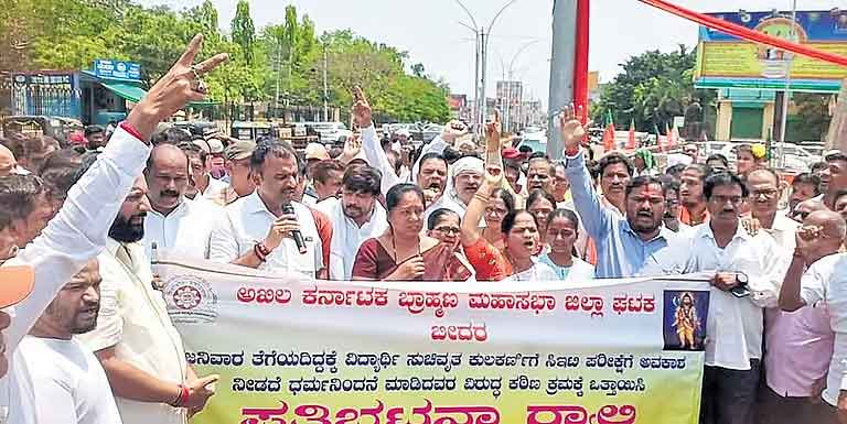 ಕಲಬುರಗಿ ಮತ್ತು ಬೀದರ್ನಲ್ಲಿ ಬ್ರಾಹ್ಮಣ ಸಂಘಟನೆಗಳ ಸದಸ್ಯರು ಶನಿವಾರ ಪ್ರತಿಭಟನೆ ನಡೆಸಿದ್ದು, ಟೈಯರ್ ಗಳಿಗೆ ಬೆಂಕಿ ಹಚ್ಚಿ ಆಕ್ರೋಶ ವ್ಯಕ್ತಪಡಿಸಿದರು. ವಿದ್ಯಾರ್ಥಿಗಳಿಗೆ ನ್ಯಾಯ ಒದಗಿಸಬೇಕು ಮತ್ತು ತಪ್ಪಿತಸ್ಥರಿಗೆ ಕಠಿಣ ಶಿಕ್ಷೆ ವಿಧಿಸಬೇಕೆಂದು ಒತ್ತಾಯಿಸಿದರು.