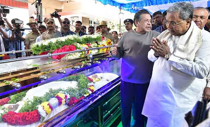 ಬೆಂಗಳೂರು: ಕಾಶ್ಮೀರದ ಪಹಲ್ಗಾಮ್ ನಲ್ಲಿ ಉಗ್ರರ ಗುಂಡೇಟಿಗೆ ಬಲಿಯಾದ ಬೆಂಗಳೂರಿನ ಮತ್ತಿಕೆರೆ ನಿವಾಸಿ ಭರತ್ ಭೂಷಣ್ ಅವರ ಮೃತದೇಹವನ್ನು ಇರಿಸಲಾಗಿದೆ. ಮುಖ್ಯಮಂತ್ರಿ ಸಿದ್ದರಾಮಯ್ಯ ಭರತ್ ನಿವಾಸಕ್ಕೆ ತೆರಳಿ ಅಂತಿಮ ದರ್ಶನ್ ಪಡೆದು ಕುಟುಂಬಸ್ಥರಿಗೆ ಸಾಂತ್ವನ ಹೇಳಿದರು.