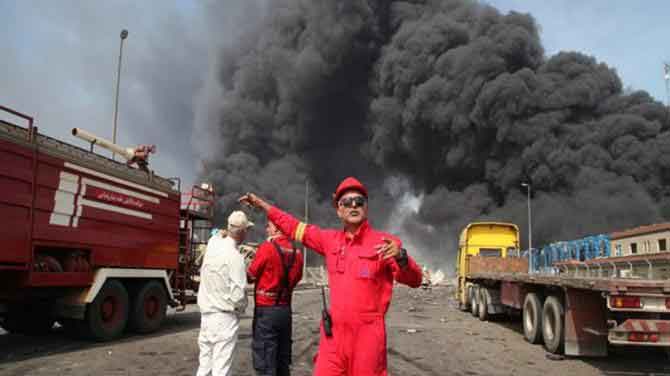 A huge plume of thick, grey smoke was seen rising from the Shahid Rajaee port complex.