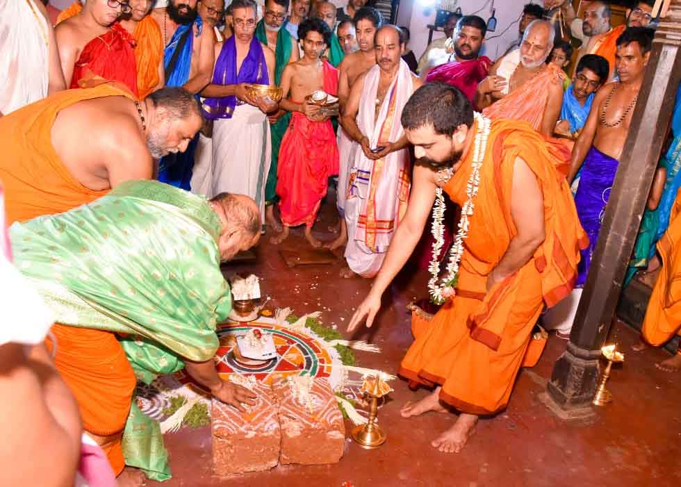 ಪರ್ಯಾಯ ಪುತ್ತಿಗೆ ಮಠಾಧೀಶರಾದ ಶ್ರೀ ಸುಗುಣೇಂದ್ರ ತೀರ್ಥ ಶ್ರೀ ಪಾದರು , ಕಿರಿಯ ಪಟ್ಟದ ಯತಿಗಳಾದ ಶ್ರೀ ಸುಶ್ರೀಂದ್ರ ತೀರ್ಥ ಶ್ರೀಪಾದರ ಸಮಕ್ಷಮ ಮಂತ್ರಾಲಯ ಮಠದ ಶ್ರೀ ಸುಬುಧೇಂದ್ರ ತೀರ್ಥ ಶ್ರೀಪಾದರು ಶಿಲಾನ್ಯಾಸ ನೆರವೇರಿಸಿದರು.