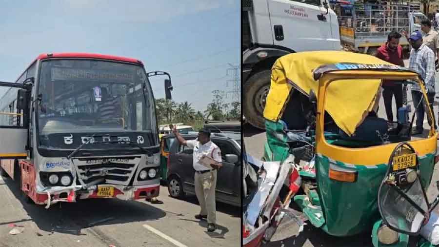 ಬೆಂಗಳೂರು ಗ್ರಾಮಾಂತರ ಜಿಲ್ಲೆಯ ನೆಲಮಂಗಲದ ರಾಷ್ಟ್ರೀಯ ಹೆದ್ದಾರಿ 75ರ ಮಲ್ಲರಬಾಣವಾಡಿ ಬಳಿ ಕರ್ನಾಟಕ ರಾಜ್ಯ ರಸ್ತೆ ಸಾರಿಗೆ ಸಂಸ್ಥೆ (ಕೆಎಸ್ಆರ್ಟಿಸಿ) ಬಸ್ ಮತ್ತು ಆಟೋ ರಿಕ್ಷಾ ನಡುವೆ ಭೀಕರ ಅಪಘಾತ ಸಂಭವಿಸಿದೆ.