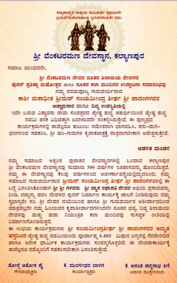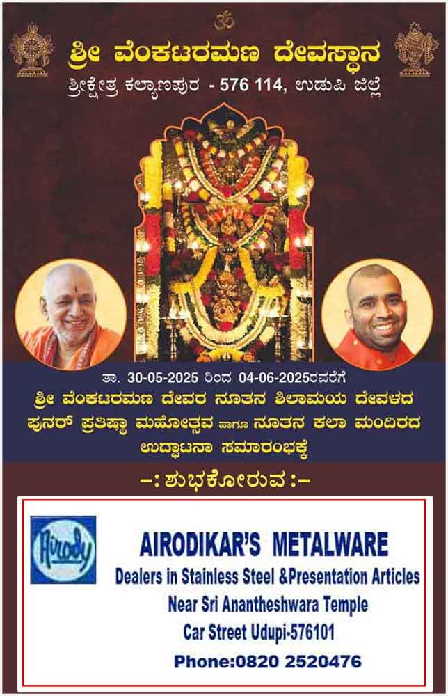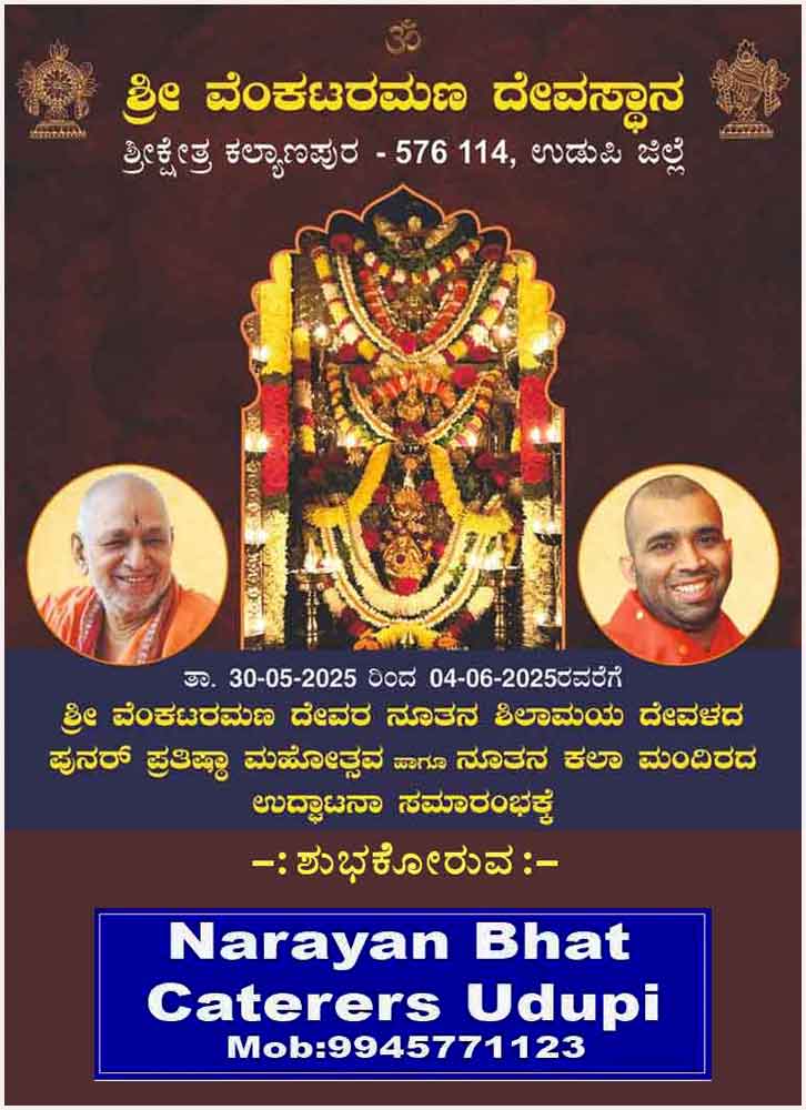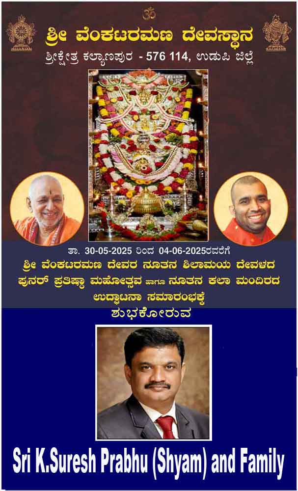 ಭಕ್ತರಿಗೆ ಇಷ್ಟಾರ್ಥವನ್ನು ಸದಾ ಸಿದ್ಧಿಸುತ್ತಿರುವ ಕಲ್ಯಾಣಪುರದ ಶ್ರೀವೆ೦ಕಟರಮಣ ದೇವರಿಗೆ ನೂತನ ಶಿಲಾಮಯ ದೇವಳದ ಸಮರ್ಪಣೆಯೊ೦ದಿಗೆ ಪುನರ್ ಪ್ರತಿಷ್ಠಾ ಮಹೋತ್ಸವ-ಜೂನ್ 4ಕ್ಕೆ:(ಪುನರ್ ಪ್ರತಿಷ್ಠಾ ಮಹೋತ್ಸವದ ವಿಶೇಷ ವರದಿ )