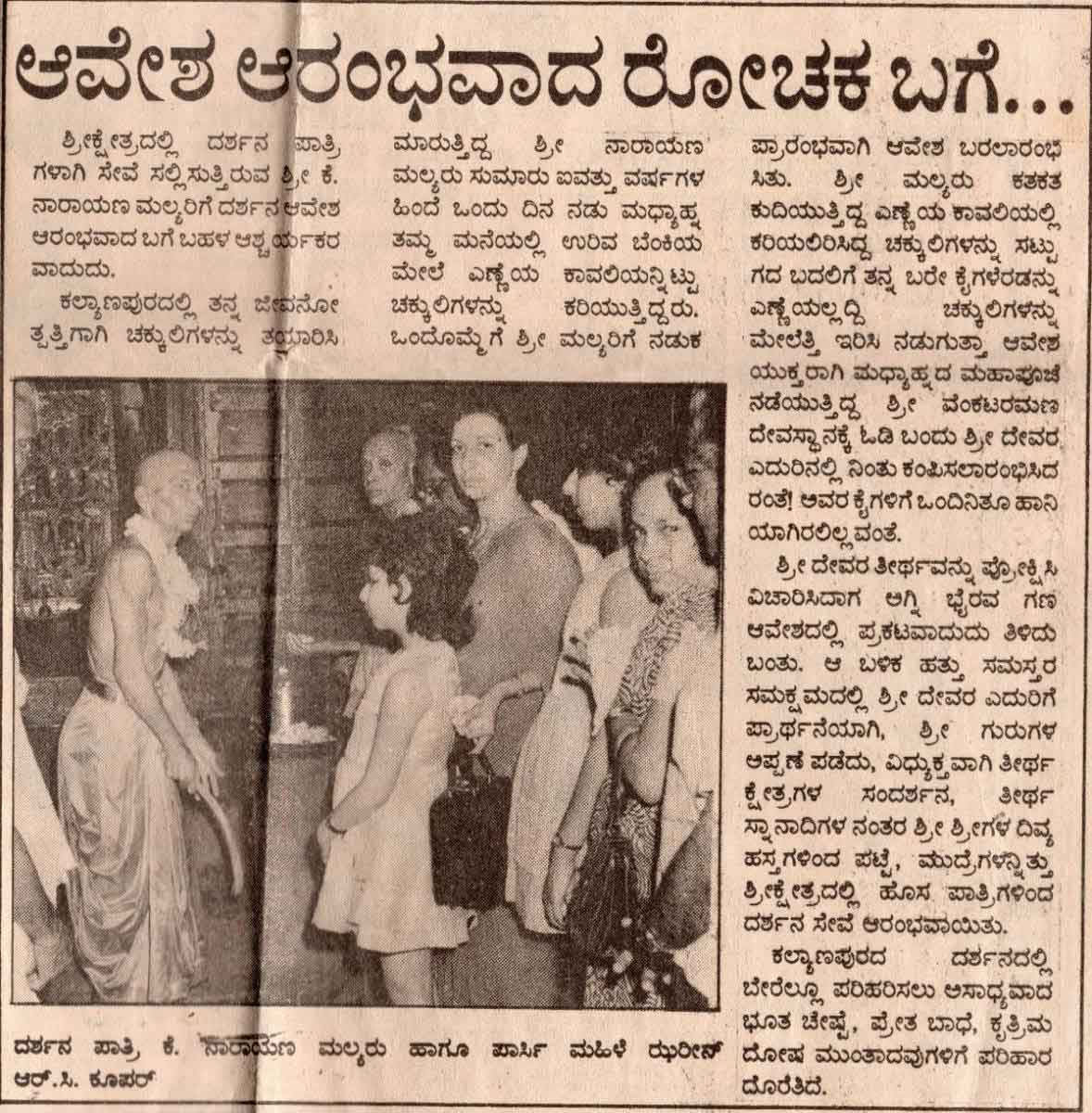 ಅಗ್ನಿಭೈರವ ದರ್ಶನಸೇವೆ(ಆವೇಷ)ನಿ೦ತರವಾಗಿ ನಡೆಯುತ್ತಿತ್ತು. ಮಾತ್ರವಲ್ಲದೇ ಈ ಸೇವೆಯು ಸ್ಥಳೀಯರಿಗೆ ಮಾತ್ರವಲ್ಲದೇ ಹೊರದೇಶದಲ್ಲಿ (ಸಿ೦ಗಾಪುರದ) ನಿವಾಸಿಯಾದ ಝುರೀನ ಆರ್ ಸಿ ಕಪೂರ್ ಮಹಿಳೆಗೆ(ಪಾರ್ಸಿ)ಎ೦ಬವರಿಗೆ ಕನಸಿನಲ್ಲಿ ಬ೦ದು ಪ್ರಸಾದವನ್ನು ಕೊಟ್ಟು ಇಲ್ಲಿಗೆ ಬರ ಮಾಡಿಕೊ೦ಡ ಪ್ರತ್ಯಕ್ಷ ನಿದರ್ಶನವೂ ನಡೆದ ಇತಿಹಾಸವು ಕ್ಷೇತ್ರಕ್ಕಿದೆ.