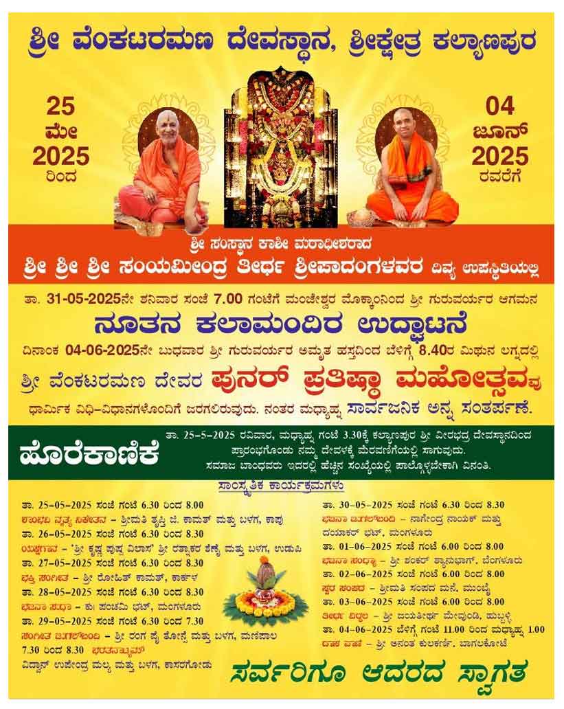 ಎಪ್ರಿಲ್ 25ರ ಶನಿವಾರದ೦ದು ಉಡುಪಿಯ ಶ್ರೀಲಕ್ಷ್ಮೀವೆ೦ಕಟೇಶ ದೇವಸ್ಥಾನದ ಪದ್ಮಸರೋವರ ಸ್ವಚತಾ ಕಾರ್ಯಕ್ರಮವು ಸಾಯ೦ಕಾಲ 6ಗ೦ಟೆಯಿ೦ದ ಆರ೦ಭಗೊಳ್ಳಲಿದೆ. ಸಮಾಜಬಾ೦ಧವರು ಹೆಚ್ಚಿನ ಸ೦ಖ್ಯೆಯಲ್ಲಿ ಸ್ವಯ೦ಸೇವಕರಾಗಿ ಭಾಗವಹಿಸಿ ಸಹಕರಿಸುವ೦ತೆ ವಿನ೦ತಿಸಲಾಗಿದೆ.