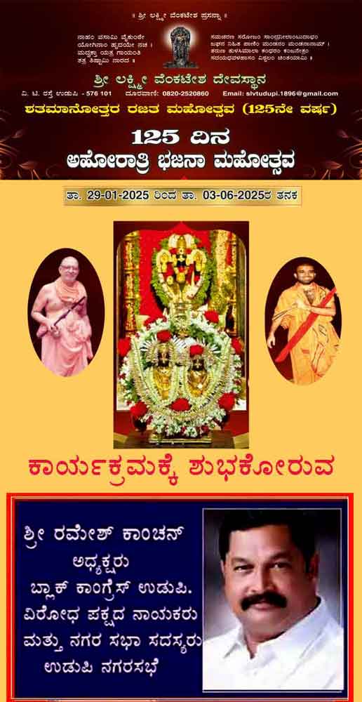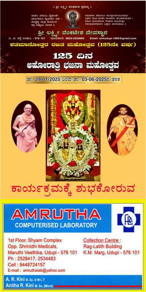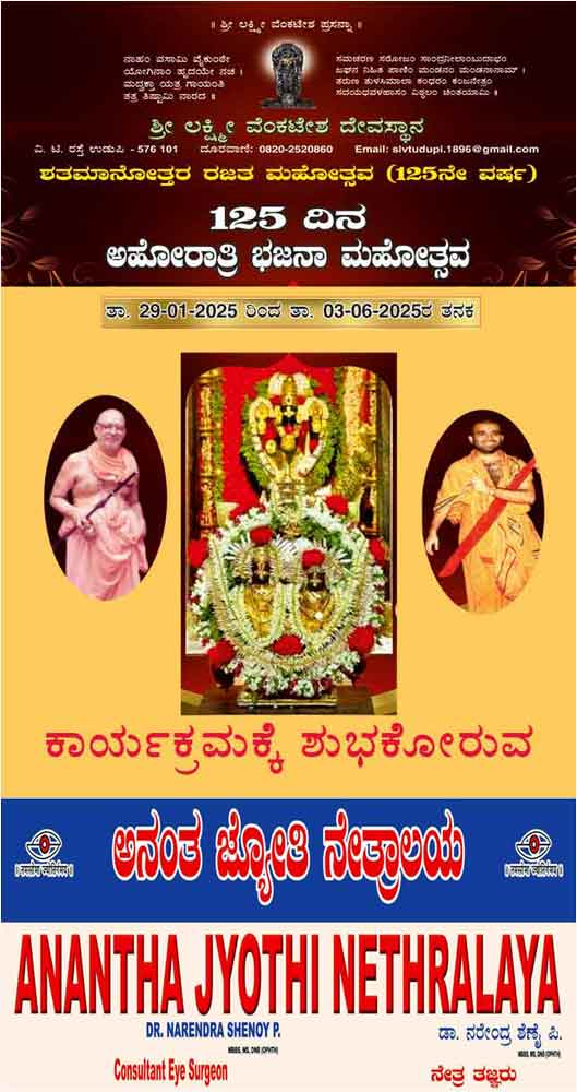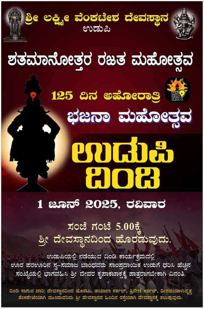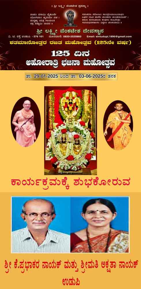 ಉಡುಪಿ ಶ್ರೀಲಕ್ಷ್ಮೀವೆ೦ಕಟೇಶ ದೇವಸ್ಥಾನದಲ್ಲಿ 125ದಿನಗಳ ಅಹೋರಾತ್ರಿ ಭಜನಾ ಮಹೋತ್ಸವ-ಜೂನ್ 1ರ೦ದು ಉಡುಪಿ ದಿ೦ಡಿ ಕಾರ್ಯಕ್ರಮ
