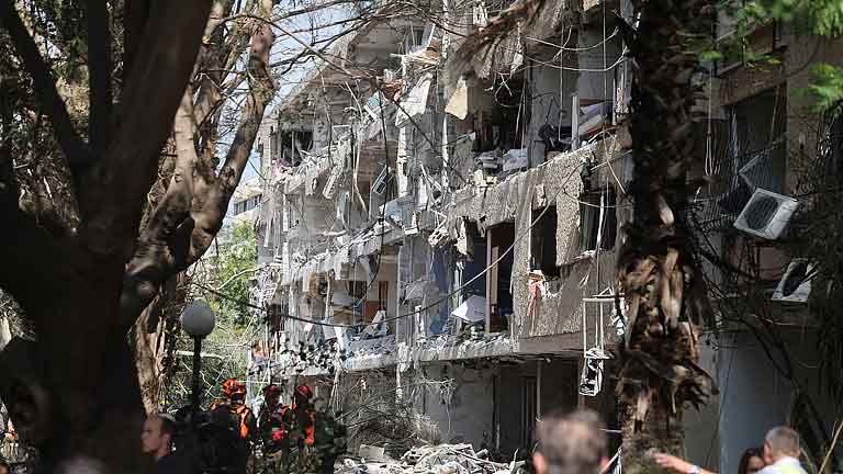ಟೆಲ್ ಅವಿವ್ನ ರಾಮತ್ ಅವಿವ್ ಪ್ರದೇಶದಲ್ಲಿ ಹಲವಾರು ಕಟ್ಟಡಗಳು ತೀವ್ರವಾಗಿ ಹಾನಿಗೊಳಗಾಗಿವೆ, ಅಪಾರ್ಟ್ಮೆಂಟ್ ಕಟ್ಟಡಗಳ ಮುಂಭಾಗಗಳಲ್ಲಿ ದೊಡ್ಡ ದೊಡ್ಡ ರಂಧ್ರಗಳು ಸೃಷ್ಟಿಯಾಗಿವೆ. ಹಾನಿಗೊಳಗಾದ ಮನೆಗಳ ಪೈಕಿ ಒಂದು ಕಟ್ಟಡವನ್ನು ಕೆಡವಿ, ಪುನರ್ ನಿರ್ಮಾಣ ಮಾಡಲು ನಿರ್ಧರಿಸಲಾಗಿತ್ತು. ಹೀಗಾಗಿ ಕಟ್ಟಡದಲ್ಲಿ ಯಾವುದೇ ನಿವಾಸಿಗಳಿರಲಿಲ್ಲ. ಪ್ರಸ್ತುತ ಆಶ್ರಯದಲ್ಲಿರುವವರೆಲ್ಲೂ ಸುರಕ್ಷಿತ ಹಾಗೂ ಆರೋಗ್ಯವಾಗಿದ್ದಾರೆ ಸ್ಥಳೀಯ ಪೊಲೀಸರು ಹೇಳಿದ್ದಾರೆ.