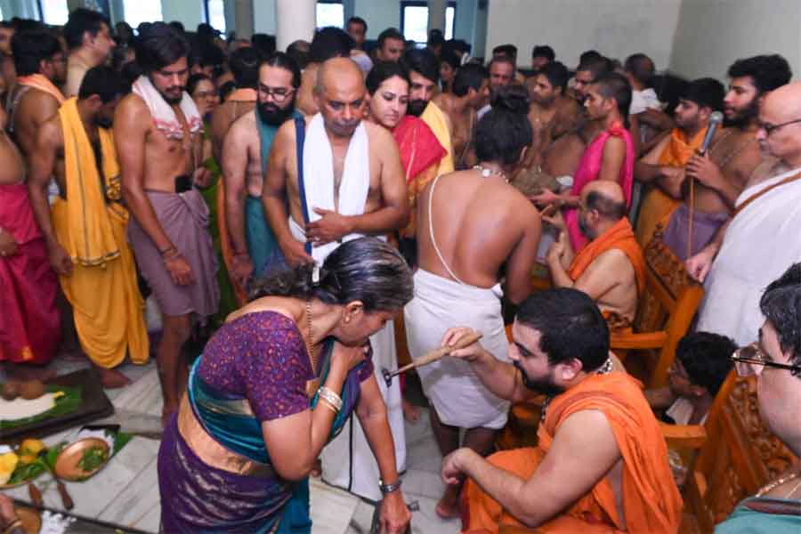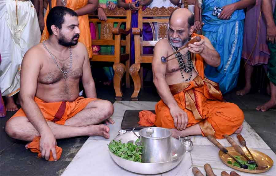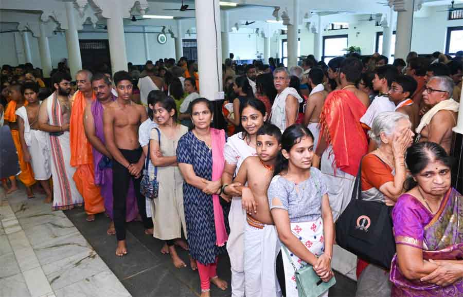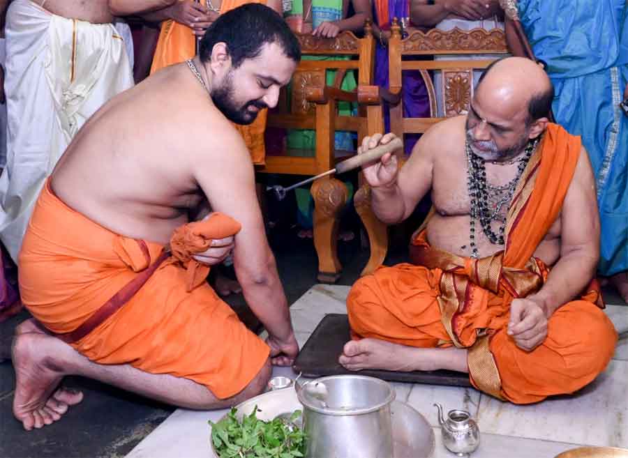ಉಡುಪಿ:06.07.2025ರ ಭಾನುವಾರದ೦ದು ಪರ್ಯಾಯ ಶ್ರೀ ಪುತ್ತಿಗೆ ಮಠ ಶ್ರೀಕೃಷ್ಣ ಮಠ,ಉಡುಪಿ ಇಂದು ಪ್ರಥಮೈಕಾದಶಿ ಪ್ರಯುಕ್ತ ಶ್ರೀಕೃಷ್ಣ ಮಠದ ಭೋಜನಶಾಲೆಯಲ್ಲಿ ಶ್ರೀ ಪುತ್ತಿಗೆ ಪರ್ಯಾಯ ಉಭಯ ಶ್ರೀಪಾದರು ಸಾವಿರಾರು ಭಕ್ತರಿಗೆ ತಪ್ತ ಮುದ್ರಾಧಾರಣೆ ನೆರವೇರಿಸಿದರು.