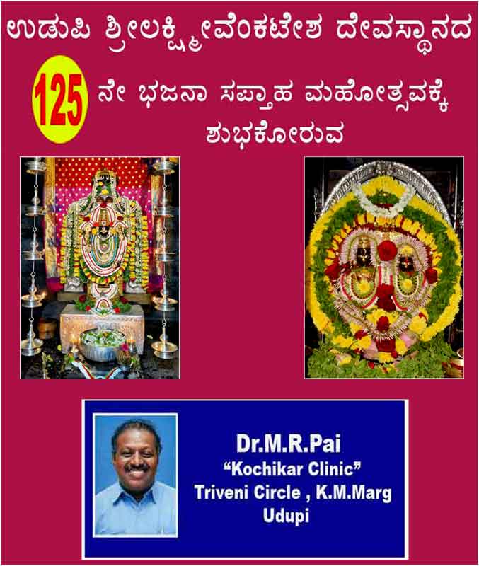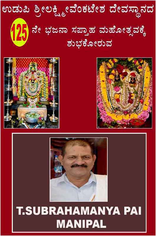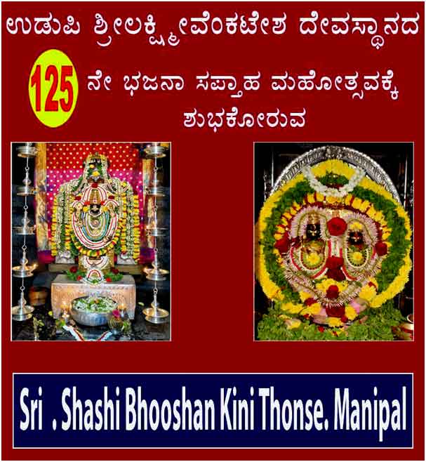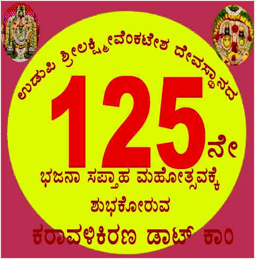 ಜು:30ರಿ೦ದ ಅಗಸ್ಟ್ 6ರವರೆಗೆ ಉಡುಪಿ ಶ್ರೀಲಕ್ಷ್ಮೀವೆ೦ಕಟೇಶ ದೇವಸ್ಥಾನದಲ್ಲಿ 125ನೇ ಭಜನಾ ಸಪ್ತಾಹ ಮಹೋತ್ಸವ