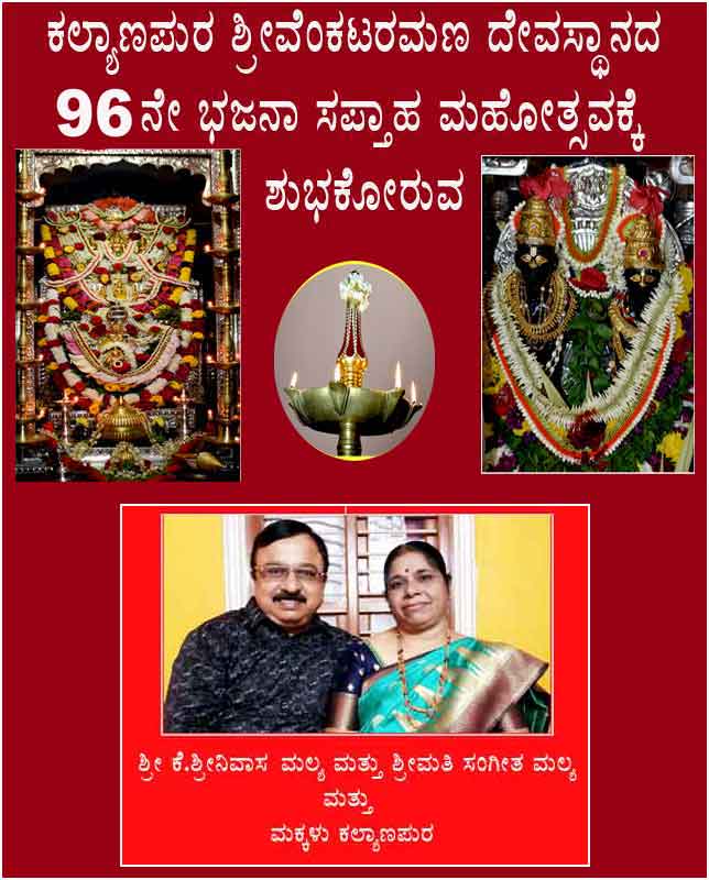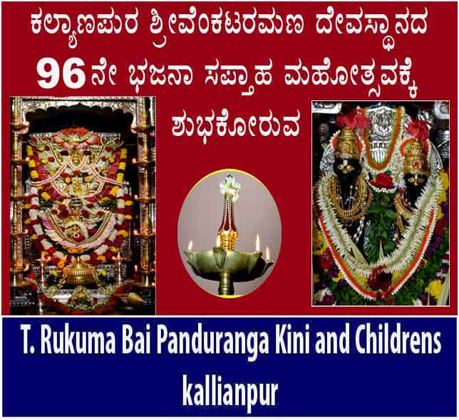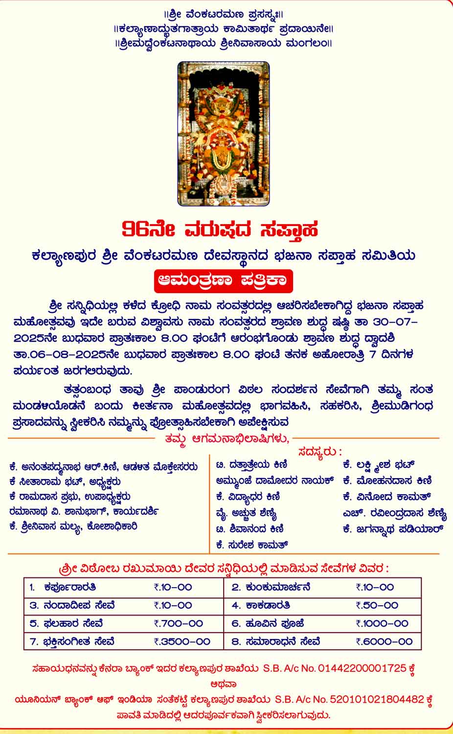 ಜು:30ರಿ೦ದ ಕಲ್ಯಾಣಪುರ ಶ್ರೀವೆ೦ಕಟರಮಣ ದೇವಸ್ಥಾನದ 96ನೇ ಭಜನಾ ಸಪ್ತಾಹಮಹೋತ್ಸವ