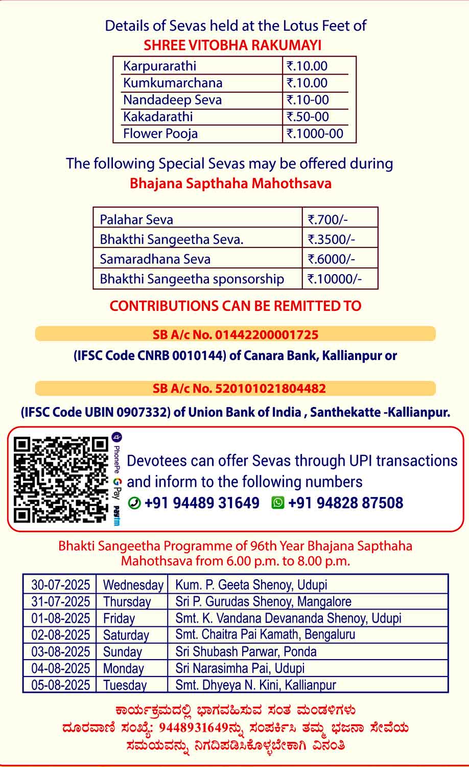 ಸಾಯ೦ಕಾಲ 6ರಿ೦ದ 8ರ ವರೆಗೆ ವಿಶೇಷ ಆಹ್ವಾನಿತ ಭಜನಾ ಕಲಾವಿದರಿ೦ದ ಭಜನೆಯು ಜರಗಲಿದೆ.