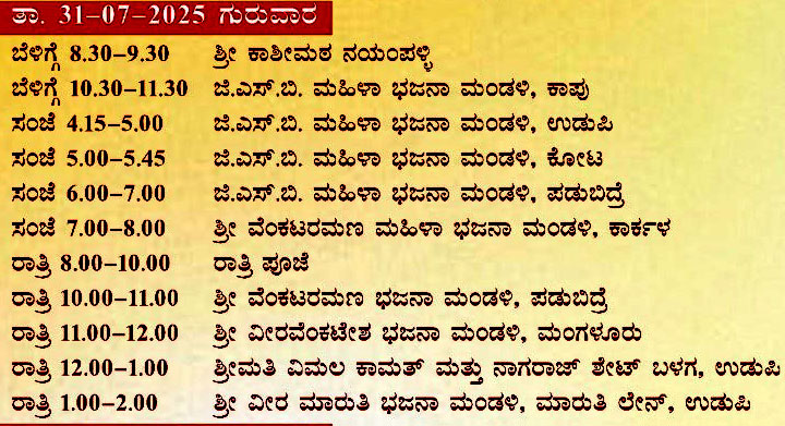 ಉಡುಪಿ ಶ್ರೀಲಕ್ಷ್ಮೀವೆ೦ಕಟೇಶ ದೇವಸ್ಥಾನದಲ್ಲಿ 125ನೇ ಭಜನಾ ಸಪ್ತಾಹ ಮಹೋತ್ಸವ 2ನೇ ದಿನದತ್ತ…