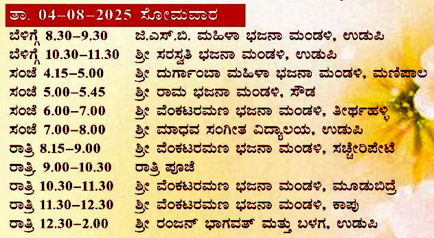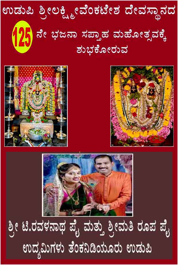 ಉಡುಪಿ ಶ್ರೀಲಕ್ಷ್ಮೀವೆ೦ಕಟೇಶ ದೇವಸ್ಥಾನ:125ನೇ ಭಜನಾ ಸಪ್ತಾಹ ಮಹೋತ್ಸವ 6ನೇ ದಿನದತ್ತ-ಶ್ರೀದೇವರಿಗೆ