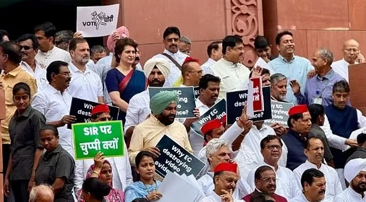 ಲೋಕಸಭೆ ವಿರೋದ ಪಕ್ಷದ ನಾಯಕ ರಾಹುಲ್ ಗಾಂಧಿ ನೇತೃತ್ವದಲ್ಲಿ ಇಂಡಿಯಾ ಮೈತ್ರಿಕೂಟದ ಸಂಸದರು ಚುನಾವಣಾ ಆಯೋಗದ ಪ್ರಧಾನ ಕಚೇರಿಯವರೆಗೆ ಪ್ರತಿಭಟನಾ ರ್ಯಾಲಿ ಆರಂಭಿಸಿದ್ದರು.