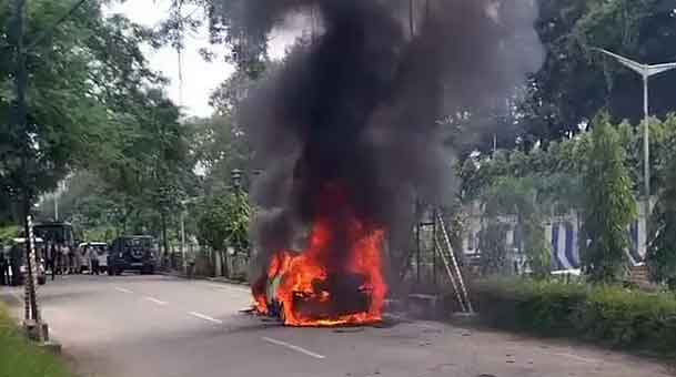 ನೋಡ ನೋಡುತ್ತಿದ್ದಂತೆ ಕಾರು ಸಂಪೂರ್ಣ ಹೊತ್ತಿ ಉರಿದಿದೆ. ಕಾರಿನ ಟೈರ್ ಮತ್ತು ಡೀಸೆಲ್ ಟ್ಯಾಂಕ್ ಸ್ಫೋಟಗೊಂಡಿದೆ ಎಂದು ವರದಿಯಾಗಿದೆ.