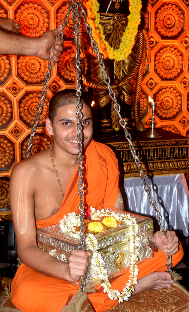 ಉಡುಪಿ:ಭಾವಿ ಪರ್ಯಾಯ ಪೀಠವನ್ನೇರಲಿರುವ ಹಾಗೂ ತಮ್ಮ ಪ್ರಥಮ ಪರ್ಯಾಯವನ್ನು ನೆರವೇರಿಸಲಿರುವ ಉಡುಪಿಯ ಶಿರೂರು ಮಠಾಧೀಶರಾದ ಶ್ರೀವೇದವರ್ಧನ ತೀರ್ಥ ಶ್ರೀಪಾದರಿಗೆ ಭಾನುವಾರದ೦ದು ಉಡುಪಿಯ ಕಡಿಯಾಳಿ ಶ್ರೀಮಹಿಷಮರ್ಧಿನಿ ದೇವಸ್ಥಾನದಲ್ಲಿ ಉಡುಪಿಯ ಉದ್ಯಮಿಗಳಾದ ಬಿ.ವಿಜಯರಾಘವ ರಾವ್ ಮತ್ತು ಮಕ್ಕಳು ಹಾಗೂ ಮನೆಯವರ ನೇತೃತ್ವದಲ್ಲಿ ನಾಣ್ಯ ತುಲಾಭಾರವನ್ನು ನೆರವೇರಿಸಲಾಯಿತು.