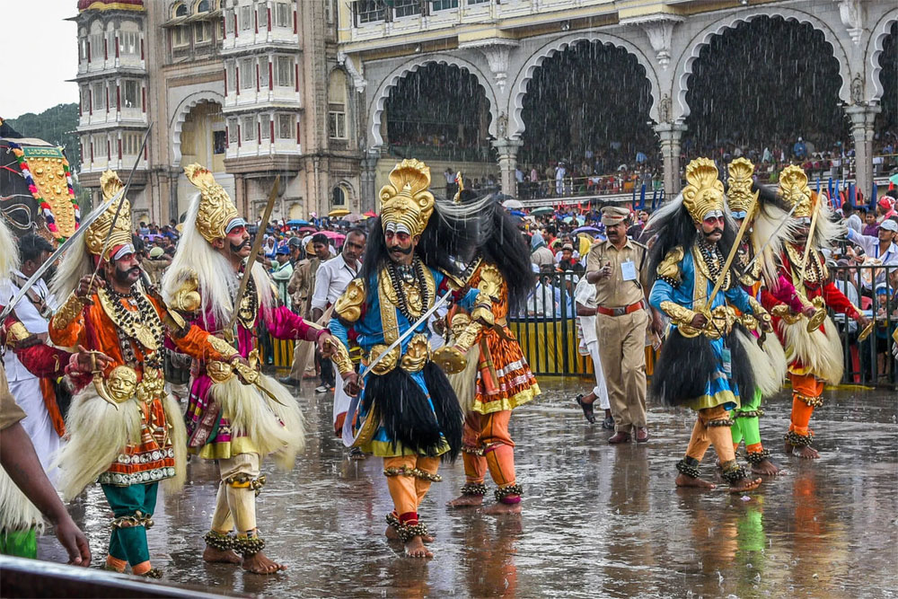 ಮೈಸೂರು ದಸರಾ: ಮಳೆಯ ಸಿ೦ಚನದ ನಡುವೆನಾಡದೇವಿ ಚಾಮುಂಡೇಶ್ವರಿಗೆ ಪುಷ್ಪಾರ್ಚನೆ; ಜಂಬೂ ಸವಾರಿಗೆ ಸಿಎಂ ಚಾಲನೆ