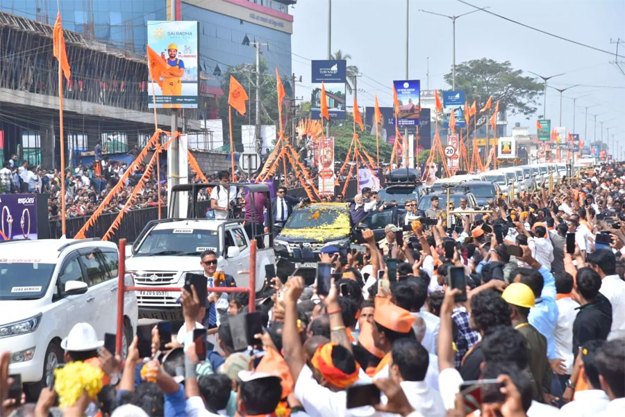 ಅಲ್ಲಿಂದ ರೋಡ್ ಶೋ ಆರಂಭವಾಗಿದ್ದು, ದಾರಿಯುದ್ದಕ್ಕೂ ಲಕ್ಷಾಂತರ ಮಂದಿ ಹೂಮಳೆ ಸುರಿಸಿ, ನೆಚ್ಚಿನ ನಾಯಕನಿಗೆ ಸ್ವಾಗತ ಕೋರಿದ್ದಾರೆ.