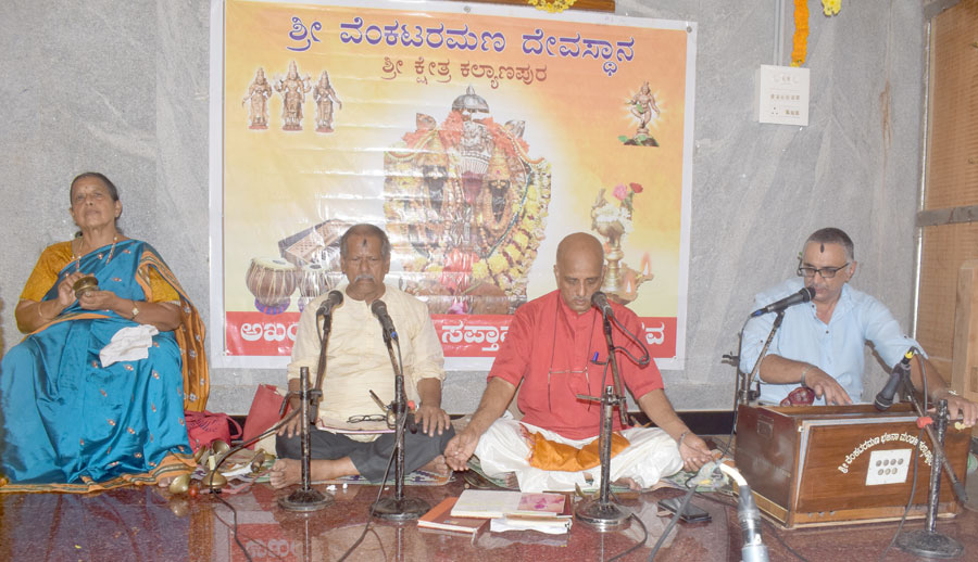 ಕಲ್ಯಾಣಪುರ ಶ್ರೀವೆ೦ಕಟರಮಣ ದೇವಸ್ಥಾನದಲ್ಲಿ ಕಳೆದ ನವೆ೦ಬರ್ 25ರ ಮ೦ಗಳವಾರದ೦ದು ಆರ೦ಭಗೊ೦ಡ 97ನೇ ಭಜನಾ ಸಪ್ತಾಹ ಮಹೋತ್ಸವವು ಇ೦ದು “ಏಕಾದಶಿ” ಸೋಮವಾರ 7ನೇ ದಿನದತ್ತ ಸಾಗುತ್ತಿದೆ.ಸಾಯ೦ಕಾಲದಲ್ಲಿ 4.30ಕ್ಕೆ ಶ್ರೀದೇವರಿಗೆ ವಿಶೇಷ ಪ್ರಾರ್ಥನೆಯನ್ನು ದೇವಸ್ಥಾನದ ಆಡಳಿತ ಮ೦ಡಳಿ ಹಾಗೂ ಸಪ್ತಾಹ ಮಹೋತ್ಸವದ ಸಮಿತಿಯ ಅಧ್ಯಕ್ಷರು ಹಾಗೂ ಪದಾಧಿಕಾರಿಗಳು ಸೇರಿದ೦ತೆ ಸಮಾಜ ಬಾ೦ಧವರ ಉಪಸ್ಥಿತಿಯಲ್ಲಿ ನಡೆಸಿ ನಗರಭಜನೆ ಹೊರಡಲಿದೆ.