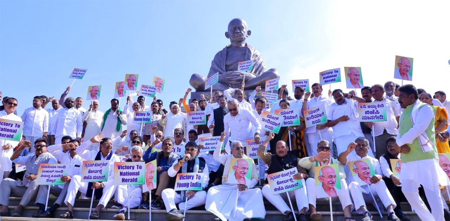 ಮುಖ್ಯಮಂತ್ರಿ ಸಿದ್ದರಾಮಯ್ಯ ಮತ್ತು ಉಪಮುಖ್ಯಮಂತ್ರಿ ಡಿಕೆ ಶಿವಕುಮಾರ್ ನೇತೃತ್ವದಲ್ಲಿ ಸುವರ್ಣ ಸೌಧದ ಗಾಂಧಿ ಪ್ರತಿಮೆ ಮುಂದೆ ನಡೆದ ಪ್ರತಿಭಟನೆಯಲ್ಲಿ ಸಚಿವರು, ಶಾಸಕರು ಮತ್ತು ವಿಧಾನ ಪರಿಷತ್ ಸದಸ್ಯರು ಭಾಗವಹಿಸಿದ್ದರು.