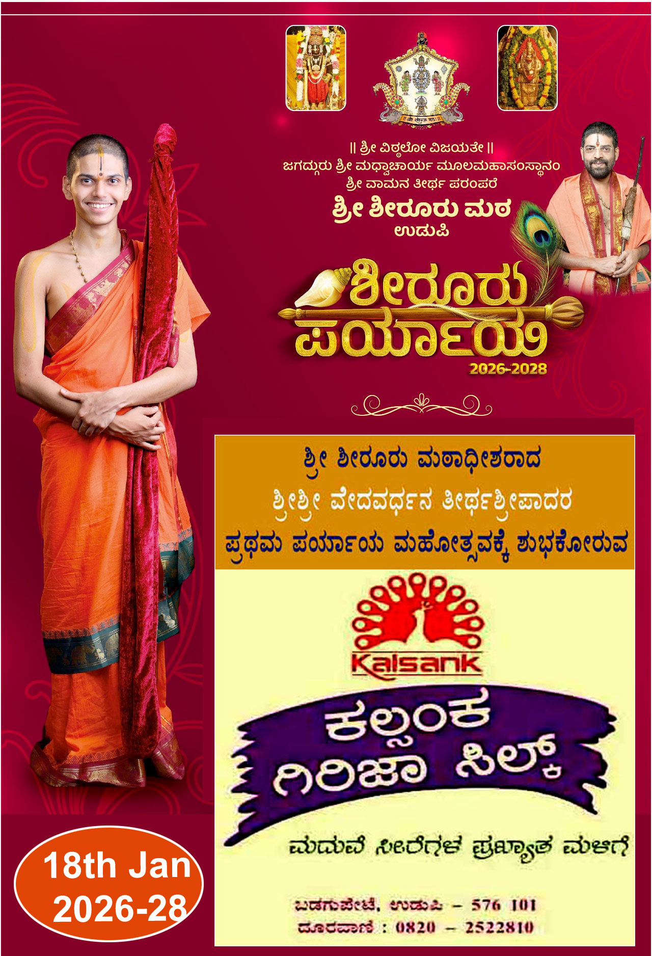 ಉಡುಪಿ ಶ್ರೀಕೃಷ್ಣಮಠದ ರಾಜಾ೦ಗಣದಲ್ಲಿ ಭಾನುವಾರದ೦ದು ಉಡುಪಿ ತಾಲೂಕು ಬ್ರಾಹ್ಮಣ ಮಹಾಸಭಾದ ಆಶ್ರಯದಲ್ಲಿ ಲೋಕ ಕಲ್ಯಾಣಾರ್ಥಕ್ಕಾಗಿ ಹಮ್ಮಿಕೊಳ್ಳಲಾದ “ಕೋಟಿ ತುಳಸಿ” ಅರ್ಚನೆಯ ಕಾರ್ಯಕ್ರಮವು ಪರ್ಯಾಯ ಶ್ರೀಪುತ್ತಿಗೆ ಮಠದ ಶ್ರೀಶ್ರೀಸುಗುಣೇ೦ದ್ರ ತೀರ್ಥಶ್ರೀಪಾದರು ಹಾಗೂ ಕಿರಿಯ ಯತಿಗಳಾದ ಶ್ರೀಶ್ರೀಸುಶ್ರೀ೦ದ್ರ ತೀರ್ಥಶ್ರೀಪಾದರ ಉಪಸ್ಥಿತಿಯಲ್ಲಿ ವಿಜೃ೦ಭಣೆಯಿ೦ದ ನೆರವೇರಿತು. ನೂರಾರು ಮ೦ದಿ ಭಕ್ತರು ಈ ಕಾರ್ಯಕ್ರಮದಲ್ಲಿ ಭಾಗವಹಿಸಿ ಪುನೀತರಾದರು.