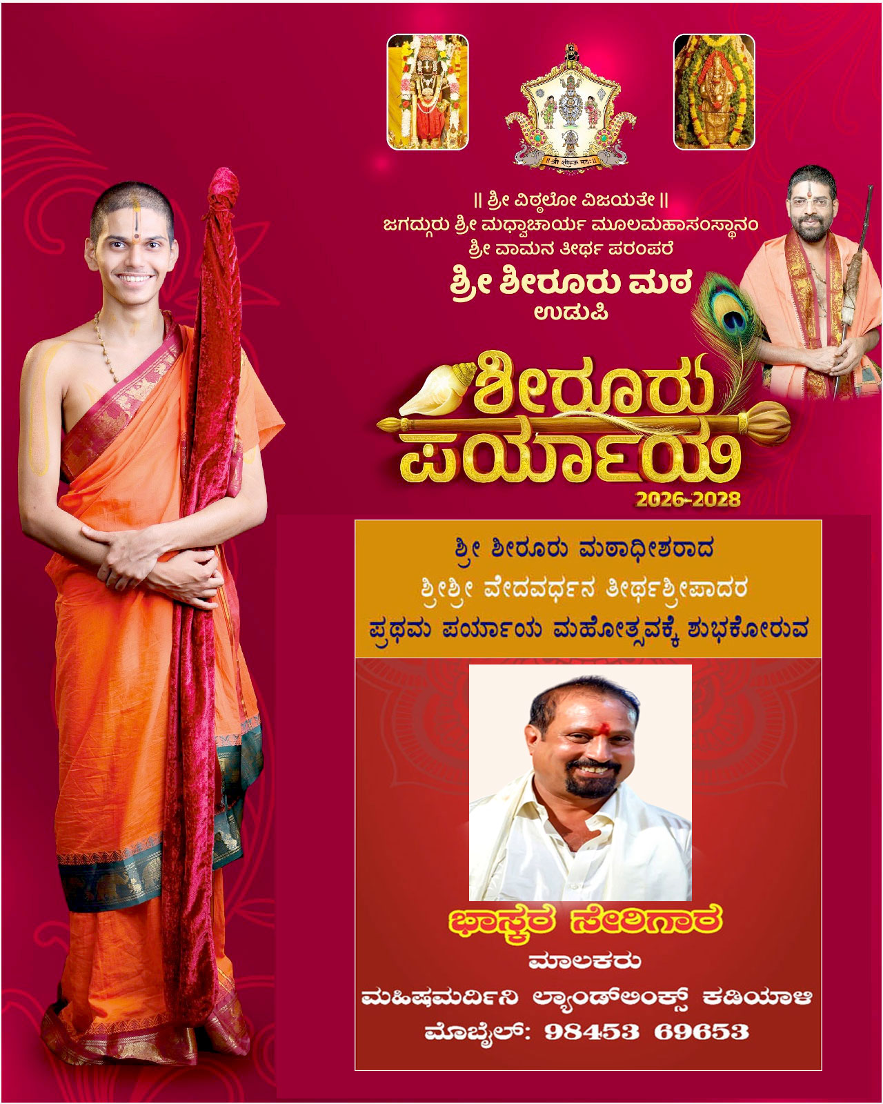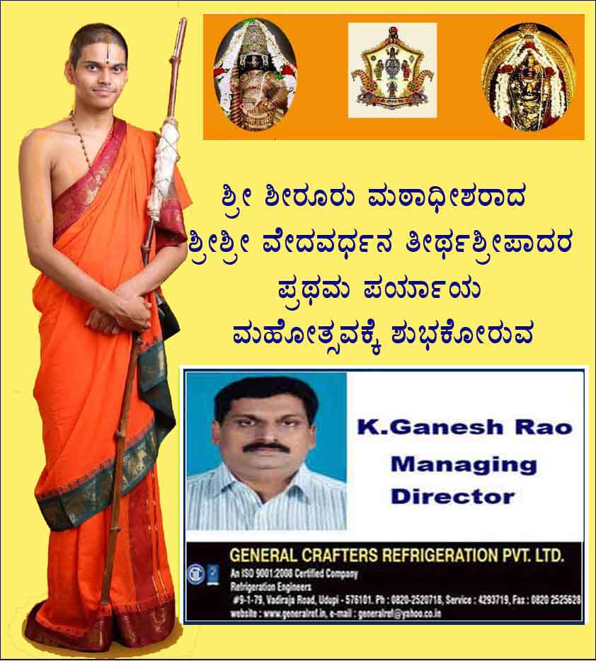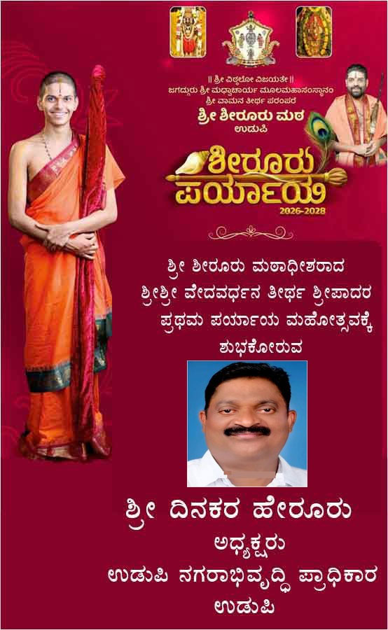 ಶೀರೂರು ಶ್ರೀ ವೇದವರ್ಧನ ತೀರ್ಥರ ಪ್ರಥಮ ಪರ್ಯಾಯ: ಜ.9ರಂದು ಪುರಪ್ರವೇಶ, ಪೌರಸಮ್ಮಾನ