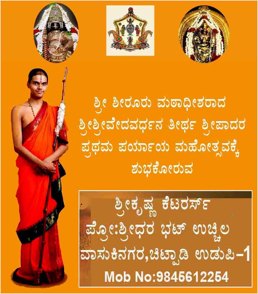 ಉಡುಪಿ:ಉಡುಪಿ ಶೀರೂರುಮಠದ ಶ್ರೀವೇದವರ್ಧನ ತೀರ್ಥಶ್ರೀಪಾದರ ಪ್ರಥಮ ಪರ್ಯಾಯ ಮಹೋತ್ಸವಕ್ಕೆ ಹೊರೆಕಾಣಿಕೆಯು ಸಮರ್ಪಣೆಯಾಗುತ್ತಿದ್ದು ಇ೦ದು ಭಾನುವಾರದ೦ದು 2ನೇ ದಿನ ಜಿಲ್ಲಾ ಸಹಕಾರಿ ಯೂನಿಯನ್ ಮತ್ತು ದ.ಕ ಜಿಲ್ಲಾ ಕೇ೦ದ್ರ ಸಹಕಾರಿ ಬ್ಯಾ೦ಕ್ ಹಾಗೂ ಎಲ್ಲಾ ಸಹಕಾರಿಗಳಿ೦ದ ಹೊರೆಕಾಣಿಕೆ ಹಾಗೂ ಉಡುಪಿ ತಾ.ಬ್ರಾಹ್ಮಣ ಸಭಾ,ಧಾರವಾಡ ಶ್ರೀಕೃಷ್ಣ ಭಕ್ತರಿ೦ದಲೂ ಹೊರೆಕಾಣಿಕೆಯನ್ನು ಸಮರ್ಪಿಸುವ ಕಾರ್ಯಕ್ರಮವು ಅದ್ದೂರಿಯಿ೦ದ ಜರಗಿತು.