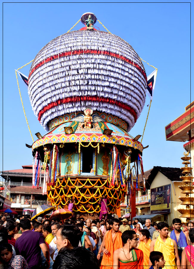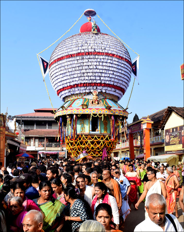 ಪರ್ಯಾಯ ಪುತ್ತಿಗೆ ಮಠಾಧೀಶರಾದ ಸುಗುಣೇಂದ್ರತೀರ್ಥ ಸ್ವಾಮೀಜಿ ಹಾಗೂ ಕಿರಿಯ ಯತಿ ಸುಶ್ರೀಂದ್ರತೀರ್ಥ ಸ್ವಾಮೀಜಿ ಅವರು ರಥದ ಮೆಟ್ಟಿಲಲ್ಲಿ ನಿಂತು ಪ್ರಸಾದವನ್ನು ಜನರತ್ತ ತೂರಿದರು. ಪ್ರಸಾದಕ್ಕಾಗಿ ಭಕ್ತರು ಮುಗಿಬಿದ್ದರು.