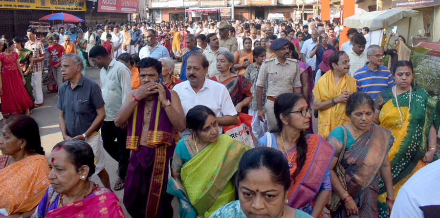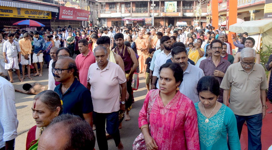 ರಥಬೀದಿಯಲ್ಲಿ ಸೇರಿದ್ದ ಜನರು ಭಕ್ತಿಪರವಶತೆಯಿಂದ ರಥ ಎಳೆದು ಭಕ್ತಿ ಮೆರೆದರು. ವಿದೇಶಿಯರು ಸೇರಿದಂತೆ ಸಾವಿರಾರು ಮಂದಿ ಹಗಲು ರಥೋತ್ಸವವನ್ನು ಕಣ್ತುಂಬಿಕೊಂಡರು.