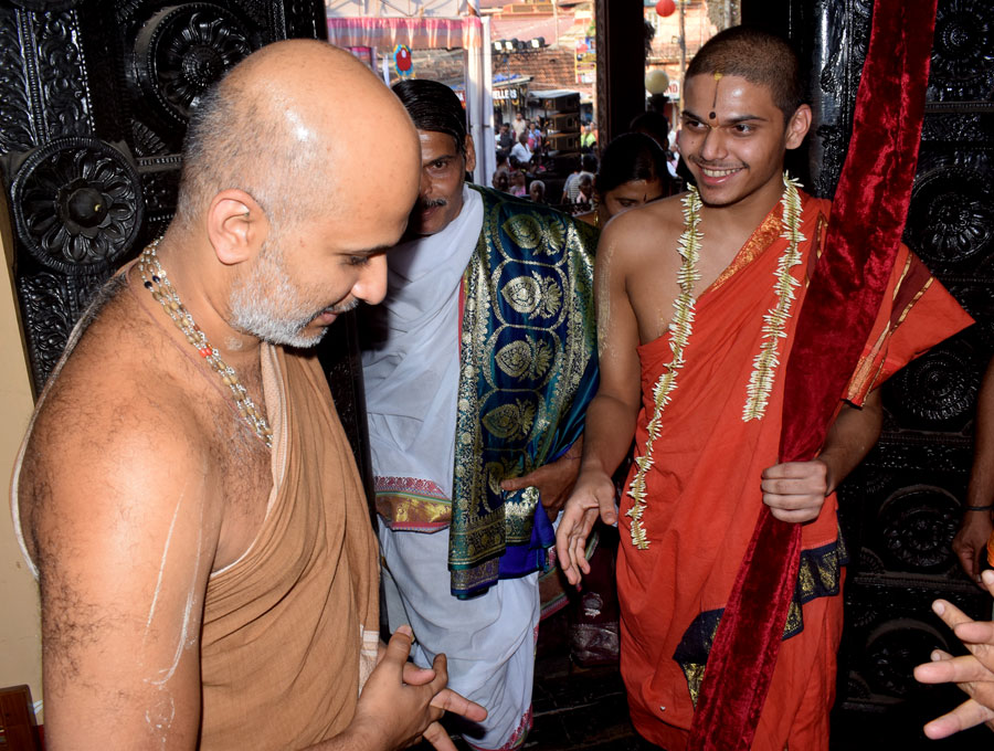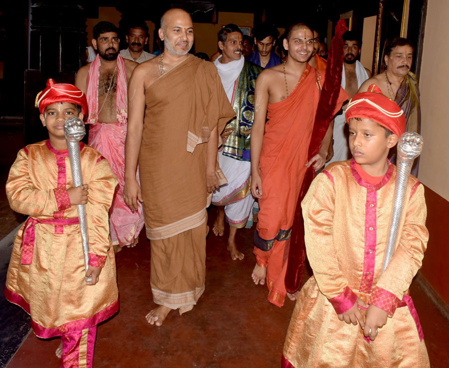 ಉಡುಪಿ:ಪ್ರಥಮ ಬಾರಿಗೆ ಪರ್ಯಾಯ ಪೀಠವನ್ನೇರಲಿರುವ ಶ್ರೀಶಿರೂರು ಮಠಾಧೀಶರಾದ ಶ್ರೀವೇದವರ್ಧನ ತೀರ್ಥ ಶ್ರೀಪಾದರಿ೦ದ ತಮ್ಮ ಪರ್ಯಾಯದ ದರ್ಬಾರು ಸಮಾರ೦ಭಕ್ಕೆ ಬರುವ೦ತೆ ರಾಯಸ(ಆಮ೦ತ್ರಣ)ವನ್ನು ನೀಡುವ ಕಾರ್ಯಕ್ರಮವು ಶನಿವಾರದ೦ದು ನಡೆಯಿತು. ಅದಮಾರು ಮಠದ ಕಿರಿಯ ಯತಿಗಳಾದ ಶ್ರೀಈಶ ಪ್ರಿಯ ತೀರ್ಥಶ್ರೀಪಾದರಿಗೆ ಅದಮಾರು ಮಠಕ್ಕೆ ಆಗಮಿಸಿ ರಾಯಸವನ್ನು ನೀಡಿದರು.
