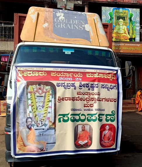 ಶೀರೂರು ಪರ್ಯಾಯಕ್ಕೆ ಶ್ರೀರಾಘವೇ೦ದ್ರ ಮಠದ ಆಶ್ರಯದಲ್ಲಿ ಅಕ್ಕಿ ಹೊರೆಕಾಣಿಕೆ ಸಮರ್ಪಣೆ…