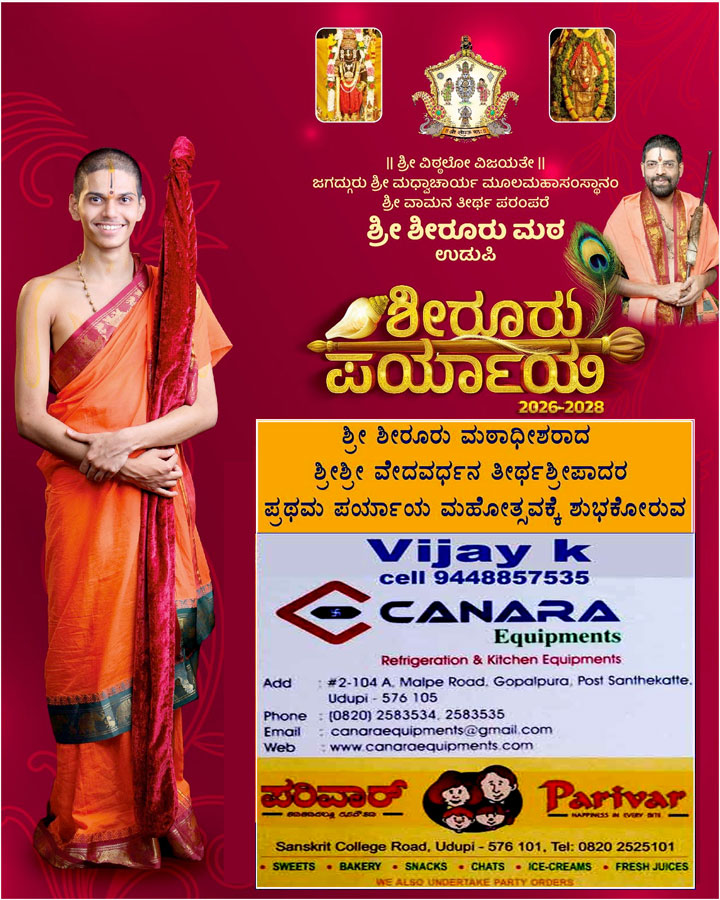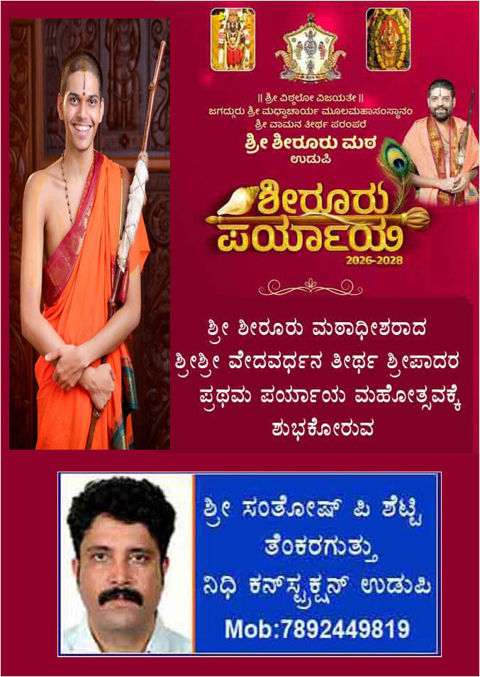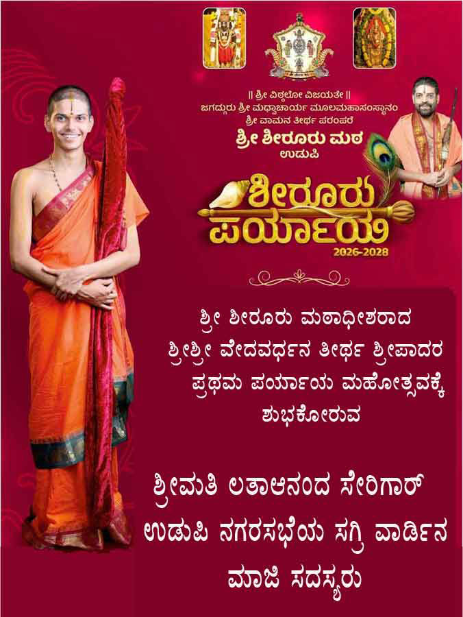 ಉಡುಪಿ: ಜ. 22 : ಕರ್ನಾಟಕದ ಹೆಸರಾಂತ ಆಭರಣ ಮಳಿಗೆಗಳಲ್ಲಿ ಒಂದಾದ “ಆಭರಣ್ ಟೈಮ್ ಲೆಸ್” ಜ್ಯುವೆಲರಿ ಬೆಂಗಳೂರು ಇದರ ಎಂ.ಡಿ ಡಾ.ಪ್ರತಾಪ್ ಮಧುಕರ ಕಾಮತ್ ಅವರು ಜನವರಿ 21ರಂದು ಶ್ರೀ ಕೃಷ್ಣ ಮುಖ್ಯಪ್ರಾಣ ದೇವರ ದರ್ಶನ ಪಡೆದು ಪರ್ಯಾಯ ಶ್ರೀ ಶೀರೂರು ಶ್ರೀ ಕೃಷ್ಣ ಮಠದ ಶ್ರೀ ವೇದವರ್ಧನತೀರ್ಥ ಶ್ರೀಪಾದರಿಂದ ಅನುಗ್ರಹ ಮಂತ್ರಾಕ್ಷತೆ ಪಡೆದರು.