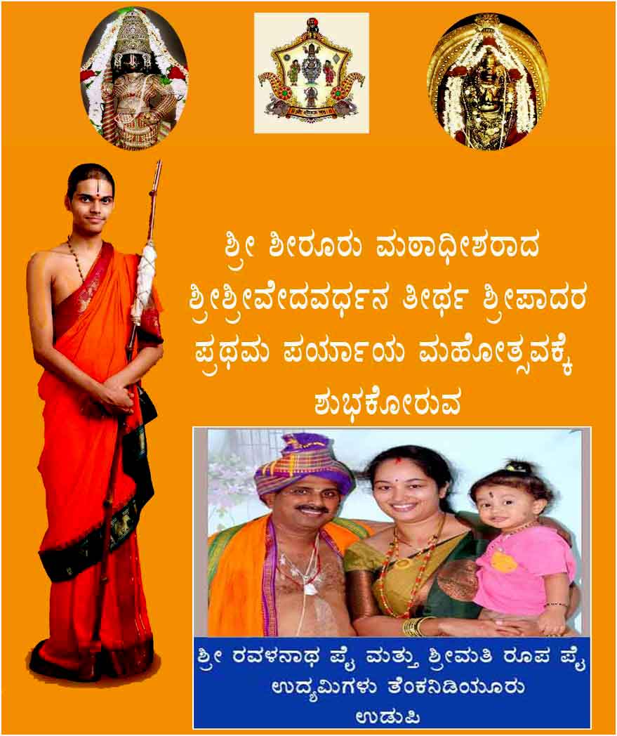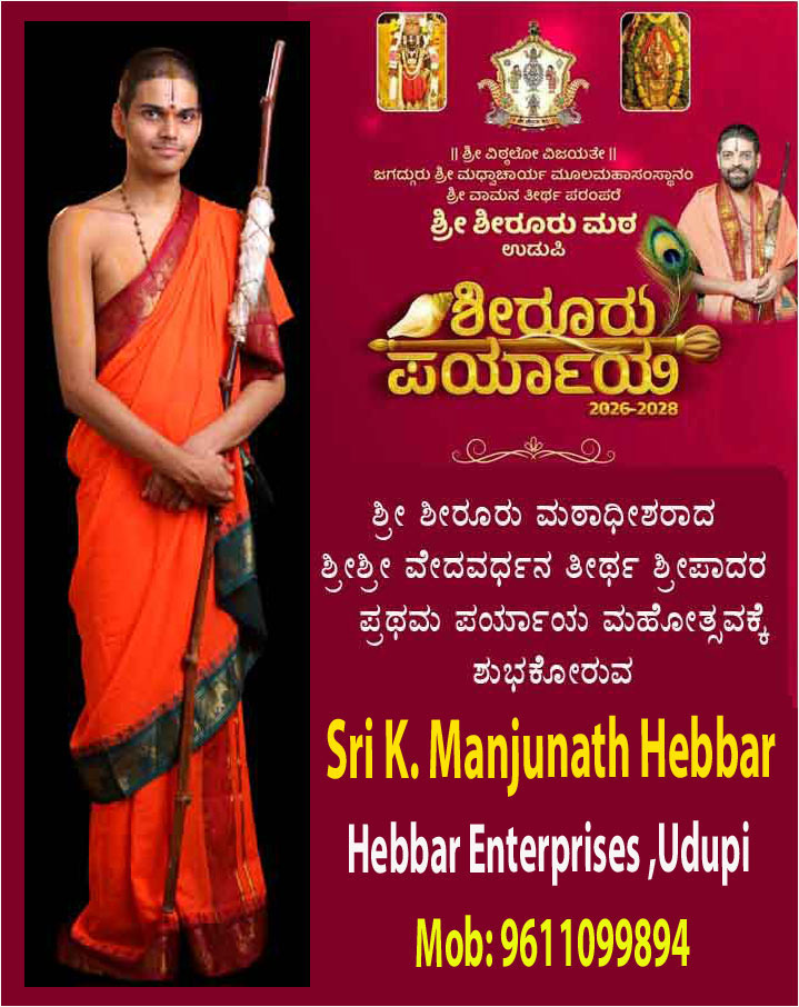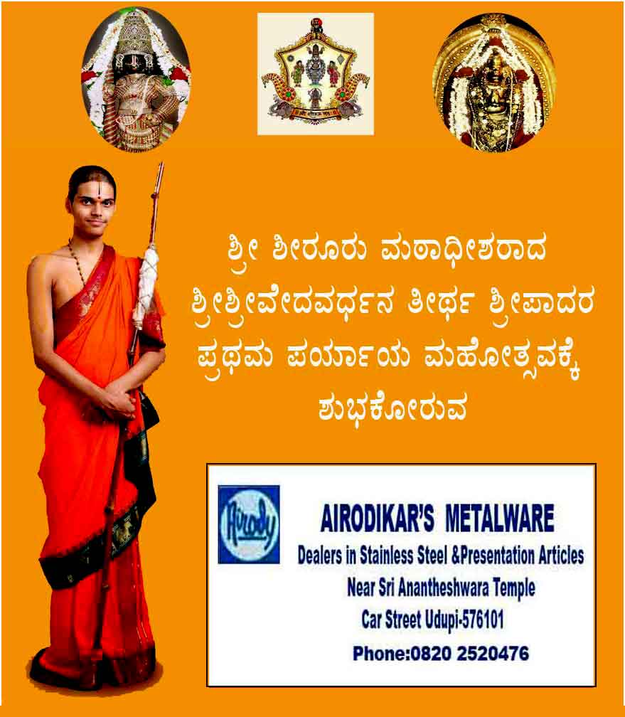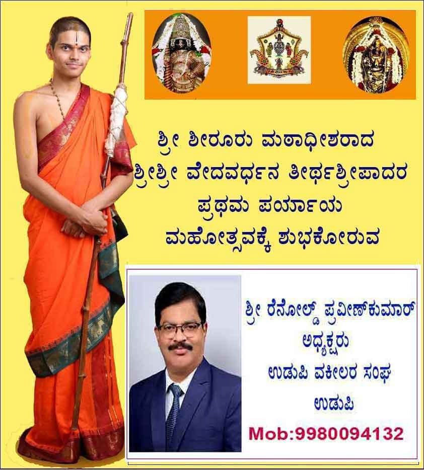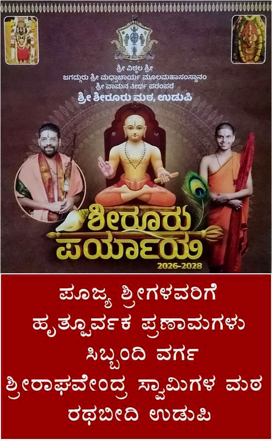 ಉಡುಪಿ:ಪ್ರಥಮ ಬಾರಿಗೆ ಪರ್ಯಾಯ ಪೀಠವನ್ನೇರಿದ ಶ್ರೀಶಿರೂರು ಮಠದ ಶ್ರೀವೇದವರ್ಧನ ಶ್ರೀಪಾದರ ಪರ್ಯಾಯ ಮಹೋತ್ಸವದಲ್ಲಿ ಪ್ರಚಾರವನ್ನು ಕೊಟ್ಟ ನಗರದ ಜಿಲ್ಲಾ ಮಟ್ಟದ ಹಿರಿಯ ಪತ್ರಕರ್ತರಿಗೆ ಶೀರೂರು ಮಠದ ಶ್ರೀ ವೇದವರ್ಧನ ಶ್ರೀಪಾದರು ಫಲಮ೦ತ್ರಾಕ್ಷತೆಯನ್ನು ನೀಡಿ ಶುಭ ಹಾರೈಸಿದರು.