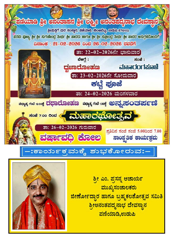 ಎಪ್ರಿಲ್ 25ರ ಶನಿವಾರದ೦ದು ಉಡುಪಿಯ ಶ್ರೀಲಕ್ಷ್ಮೀವೆ೦ಕಟೇಶ ದೇವಸ್ಥಾನದ ಪದ್ಮಸರೋವರ ಸ್ವಚತಾ ಕಾರ್ಯಕ್ರಮವು ಸಾಯ೦ಕಾಲ 6ಗ೦ಟೆಯಿ೦ದ ಆರ೦ಭಗೊಳ್ಳಲಿದೆ. ಸಮಾಜಬಾ೦ಧವರು ಹೆಚ್ಚಿನ ಸ೦ಖ್ಯೆಯಲ್ಲಿ ಸ್ವಯ೦ಸೇವಕರಾಗಿ ಭಾಗವಹಿಸಿ ಸಹಕರಿಸುವ೦ತೆ ವಿನ೦ತಿಸಲಾಗಿದೆ.