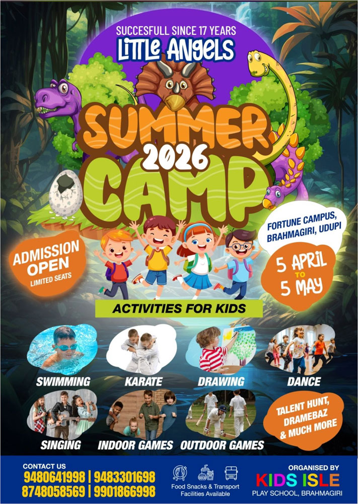ಉಡುಪಿ: ಏ.05 ರಿಂದ ಮೇ.05 ರವರೆಗೆ ಲಿಟ್ಲ್ ಏಂಜಲ್ಸ್ ನಲ್ಲಿ ಬೇಸಿಗೆ ಶಿಬಿರ ಕಾರ್ಯಕ್ರಮ…
