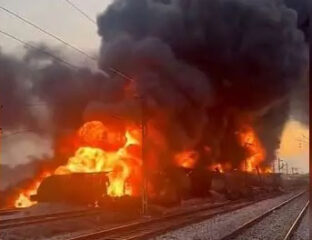ಚೆನ್ನೈ: ತಮಿಳು ನಾಡಿನ ತಿರುವಲ್ಲೂರು ಬಳಿ ಕಚ್ಚಾ ತೈಲ ಸಾಗಿಸುತ್ತಿದ್ದ ಸರಕು ಸಾಗಣೆ ರೈಲಿನಲ್ಲಿ ಭಾನುವಾರ ಬೆಳಗಿನ ಜಾವ ಬೆಂಕಿ ಕಾಣಿಸಿಕೊಂಡು ಚೆನ್ನೈ-ಅರಕ್ಕೋಣಂ ವಿಭಾಗದಲ್ಲಿ ರೈಲು ಸೇವೆಗಳು ಸ್ಥಗಿತಗೊಂಡಿದ್ದರಿಂದ ಸಾವಿರಾರು ಪ್ರಯಾಣಿಕರು ತೊಂದರೆ ಅನುಭವಿಸುವಂತಾಯಿತು. ಭಾರೀ ಬೆಂಕಿಯಿಂದಾಗಿ ಜ್ವಾಲೆಗಳು ಮತ್ತು ದಟ್ಟ ಹೊಗೆ ಉಂಟಾಗಿದ್ದು, ಹಳಿಗಳ ಬಳಿ ವಾಸಿಸುವ ನಿವಾಸಿಗಳು ಭಯಭೀತರಾದರು,