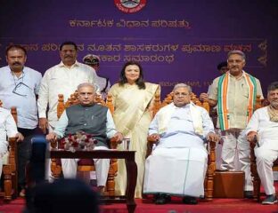ಬೆಂಗಳೂರು: ವಿಧಾನ ಸೌಧದ ಬ್ಯಾಂಕ್ವೆಟ್ ಹಾಲ್ ನಡೆದ ಕಾರ್ಯಕ್ರಮದಲ್ಲಿ ಕರ್ನಾಟಕ ವಿಧಾನ ಪರಿಷತ್ತಿಗೆ ನೂತನವಾಗಿ ನಾಮನಿರ್ದೇಶನಗೊಂಡ ಡಾ. ಆರತಿ ಕೃಷ್ಣ, ರಮೇಶ್ ಬಾಬು, ಎಫ್. ಎಚ್. ಜಕ್ಕಪ್ಪನವರ್ ಮತ್ತು ಶಿವಕುಮಾರ್.ಕೆ ಅವರು ವಿಧಾನ ಪರಿಷತ್ ನ ಸದಸ್ಯರಾಗಿ ಪಮಾಣ ವಚನ ಸ್ವೀಕರಿಸಿದರು. ವಿಧಾನ ಪರಿಷತ್ ಸಭಾಪತಿ ಬಸವರಾಜ ಹೊರಟ್ಟಿ ಅವರು
